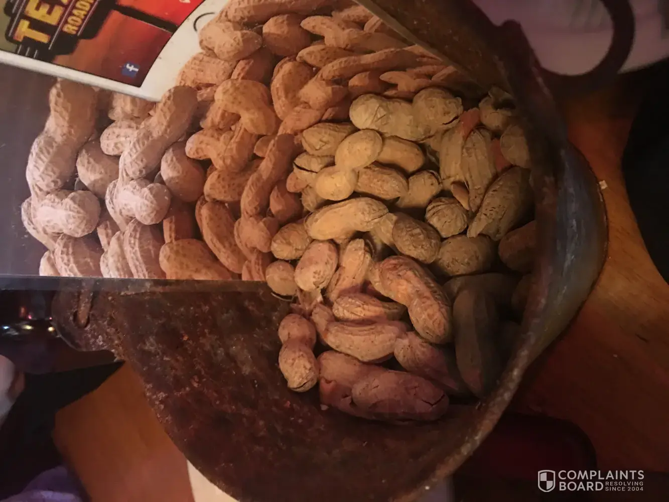 The peanuts are were stale and the Galvinized Bucket were very nasty. Our bucket at our table was very rusty and had a lot of calcium build up on them. When touching the buckets they have a texture and stink like a wet old bucket. Possibly put a liner in the bucket or something to help prevent the staleness to the peanuts. Possibly go to a plastic bucket or something that could be washout.