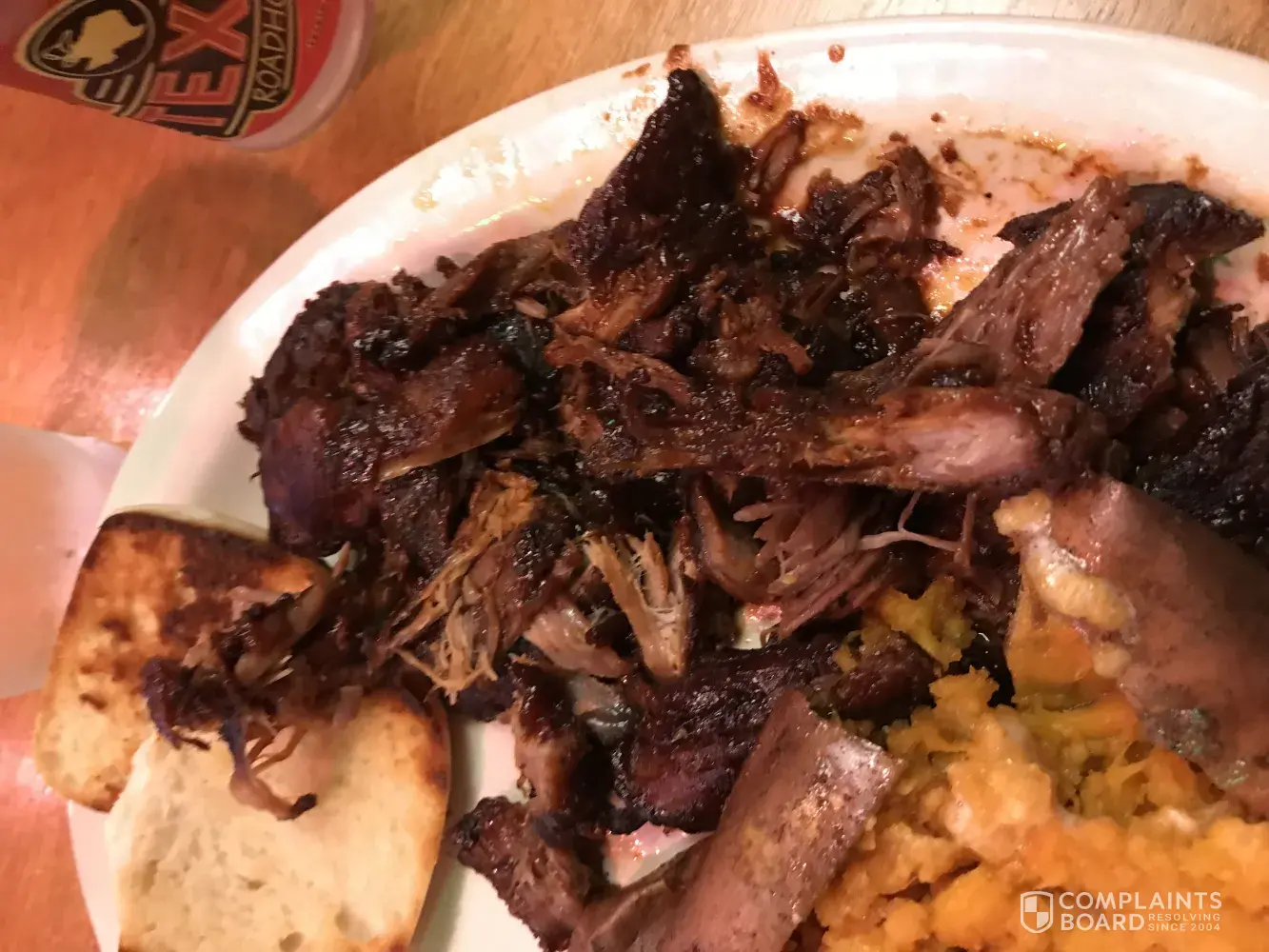 Went to Texas road house on Tuesday 3 Oct 2017 to have dinner with granddaughter. I ordered the pull pork meal and the mini cheeseburgers for the child. My pull pork looked like two day old ribs that was dried out and so we the mini cheese burger and the service was good just not happy with the quality of food. The restaurant is located in Suffolk Va 23435 and it was around 6pm
