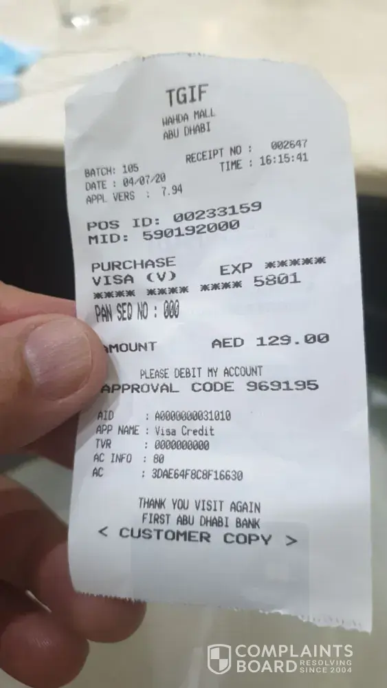 I'm a regular customer on TGI Fridays in Al Wahda Mall branch in Hazza Bin Zayed Abu Dhabi. Every time I visit the restaurant I ordered the same food, but today when I ordered the same menu I chose 80% of the meat was bone and I paid 129 AED for nothing. What kind of customer service is this? I'm a regular customer and spending money for expensive food but the service of meat was very disappointing.Â