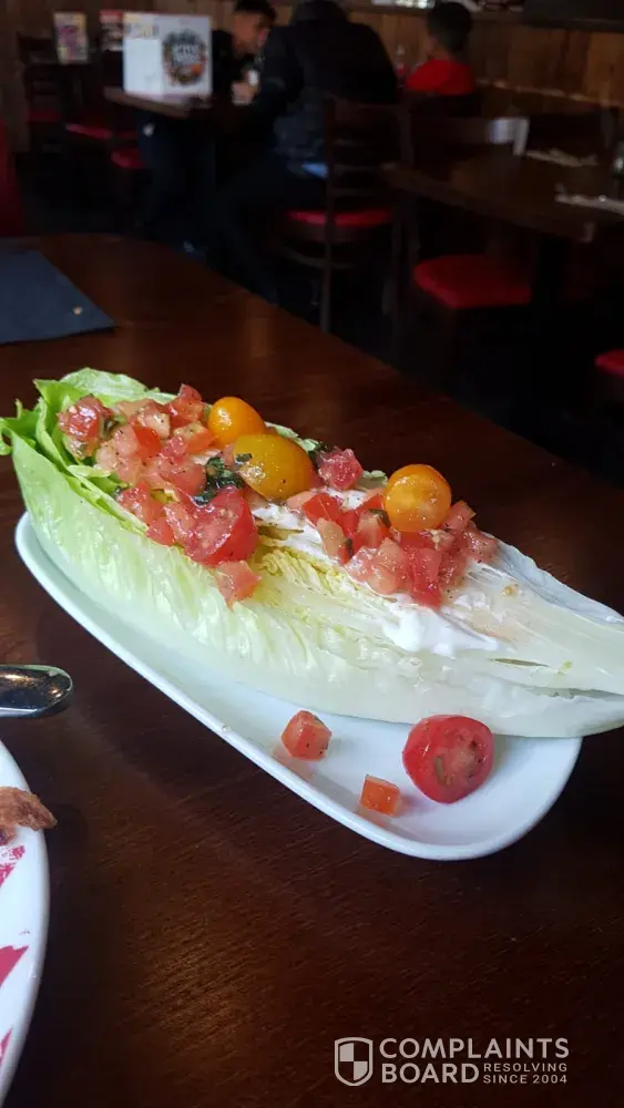 When my partner came out and sat back down, this manager came back over unbelievably and lectured me in front of my partner that I shouldn't have approached him at the bar and raised my eyebrows whilst talking as this is an aggressive mannerism, so now we have another confrontation by him. ! he also continued pushing the salad on us or £3.50 refund. So I took my partner by the hand and said come on we will go outside and said to the manager, you have totally ruined our meal and now I want a full refund and will be complaining to head office about the situation.