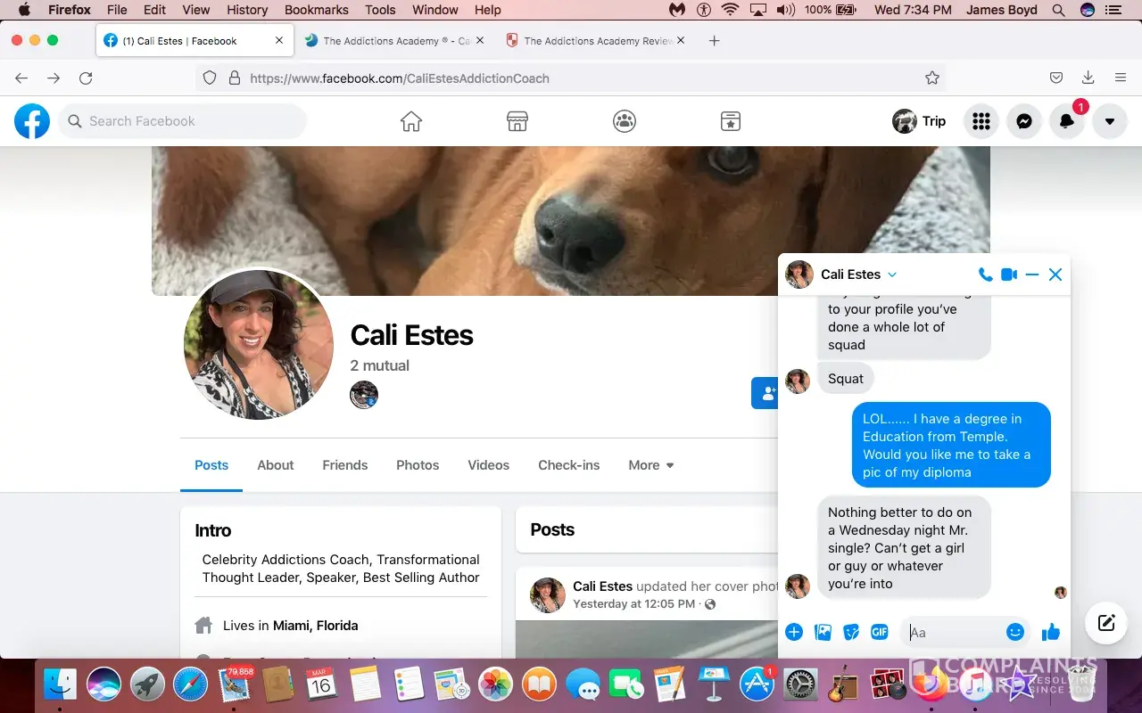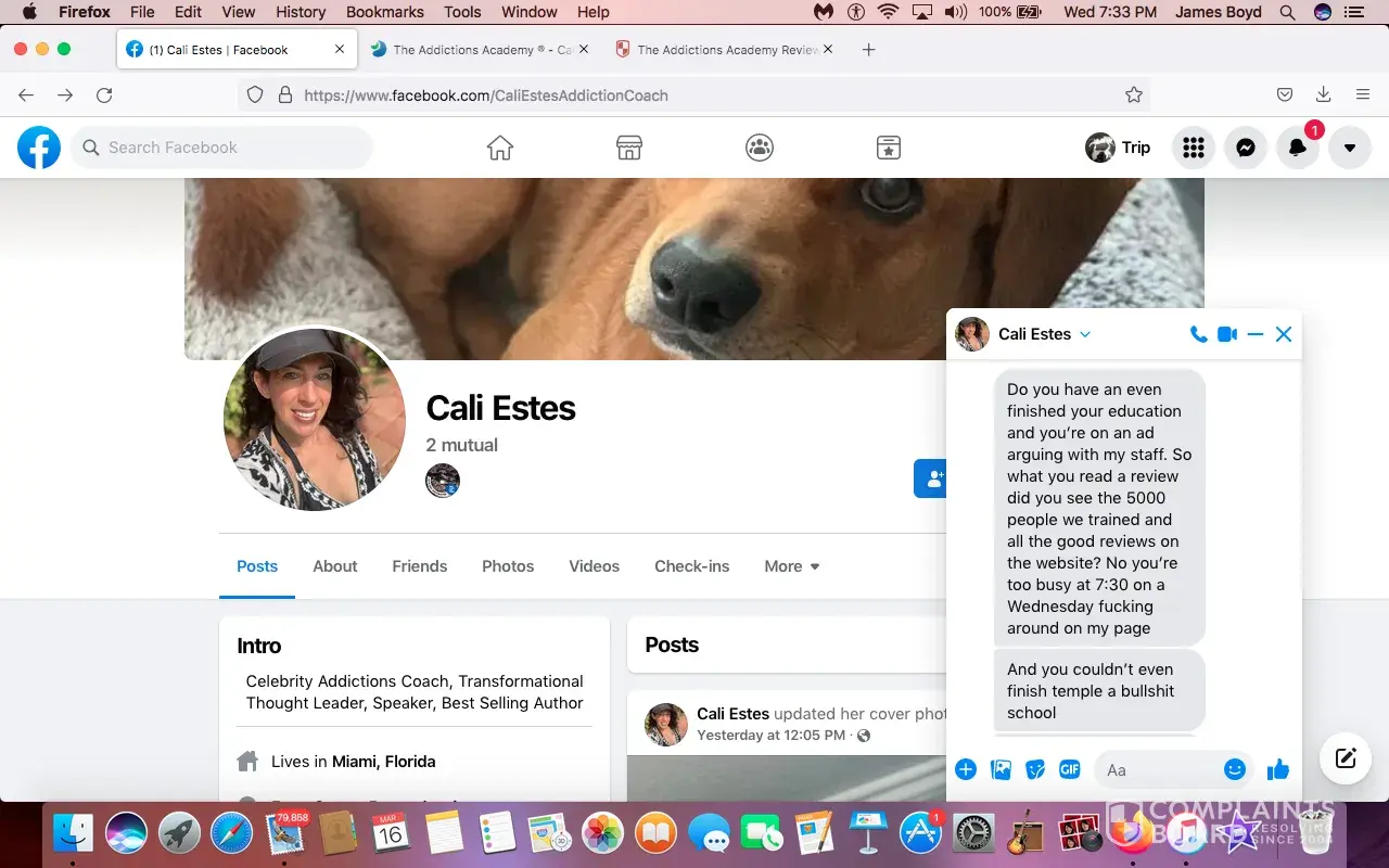 I questioned their legitimacy. Cali Estes who is in charge of The Addictions Academy inboxed me on facebook with these angry rants...