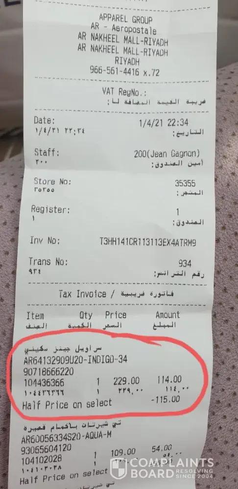 I want to complain about the Aeropostale Store in Nakheel Mall (Riyadh).