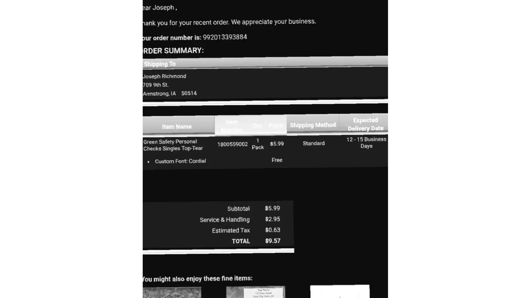 I ordered some personal checks in July. I waited three weeks and didn't receive. I contacted the company and we confirmed the address. They said they would resend and confirmed that they were resending in August and to this day - 8/31... I have not received any checks. I was told that I should have paid for the secure shipping, which I find ridiculou...