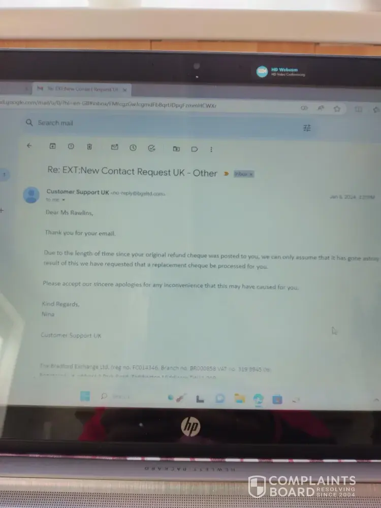 I purchased the rainbow bridge candal holder from the bradford exchange early november 2023. It arrived about two weeks later but I returned it straight away as I was not satisfied with the quality. I had to contact them to see if they had received it as I knew it had been delivered by the tracking number. I paid by credit card but they said they would refund me with a cheque. I never received it, they said I had to wait because of the christmas post, after I kept emailing them about it. After a month it had not arrived so I they said it must be lost in the post and they would send me another cheque out, that was over a fortnight ago and I still have not received it. I paid £70 for the item plus £7 post and packing.