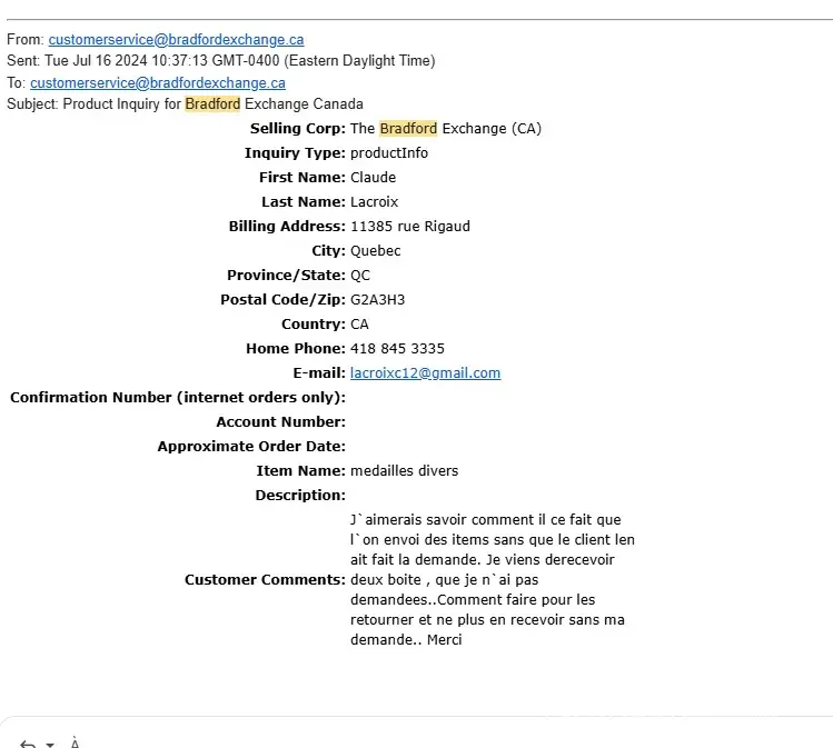 The Bradford Exchange Mail harassment