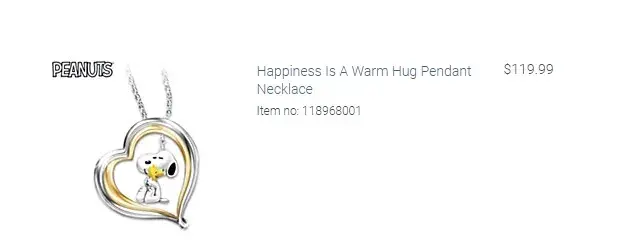 Desired outcome: Since they received the $129.95 bag, I'd like them to send the $119.99 Peanuts "Happiness is a Warm Hug" necklace, or to at least return the Footprints in the Sand handbag. We're now out the $129.95 handbag and the $11.45 to mail it back.