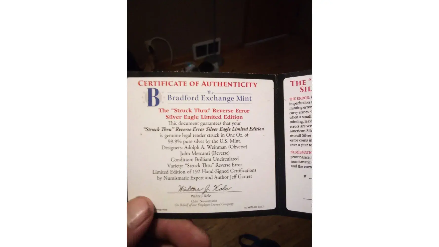 I bought a silver eagle 1986 uncirculated struck thru reverse error coin I bought this coin over a year ago for close to 250 dollars I just started collecting coins and came across this coin I bought it because of the rarity of the coin because of the error it is supposed to increase the value and rarity of the coin the coin came with a certificate of authenticity guaranteeing the coin as limited edition and claiming to be signed by a numistic expert and author Jeff Garrett so I thought the coin was legit and worth as much as was claimed well yesterday I brought the coin to a local coin dealer asking him to appraise it he looked at it thoroughly and said it's worth 30 to 40 dollars I explained to him I had a certificate of authenticity and that I paid almost 250 for it and he said Bradford exchange is known for selling bad coins and make false claims he said for one there is no error I looked with a magnifying glass and see no error and it's worth a little more then the spot price of silver and basically I got ripped off and I couldn't believe it after reading consumer complaints I have come to the conclusion that Bradford exchange scammed me by making false claims on a coin that isn't graded and is not uncirculated and there is no mint error as advertised and iam so mad and want this made right and want my money back and will never buy another thing from this company ever again and they should stop ripping people off and making claims which they know are untrue or false it makes me not want to collect coins anymore because if I can't trust a website that has a large product line and offers wide variety of collector items then I can't trust anyone my confidence in buying coins is ruined isn't it illegal to make false claims and false advertisement to customers to sell a product for way over what it is worth making claims that it's a valuable collector item when it's not I want this issue resolved and compensated for my time and either given the product advertised or I'll have to hire an attorney and contact consumer complaints and my attorney general because this is fraud and needs to stop it's out rageous and shouldn't happen in the United States of America that has laws and rules to prevent things like this