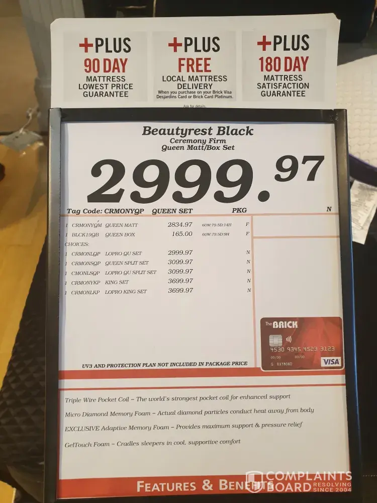 Send via email To: The Brick Canada (RIH@thebrick.com ) RE: Misleading incorrect mattress delivery and unhappy customer To whom it may concern, On the week of July 1, 2019, me and my wife came into the Brick store located at 45 Red Maple Rd, Richmond Hill, ON L4B 4M6 to look at options for mattresses, as we were interested in purchasing a mattress which...