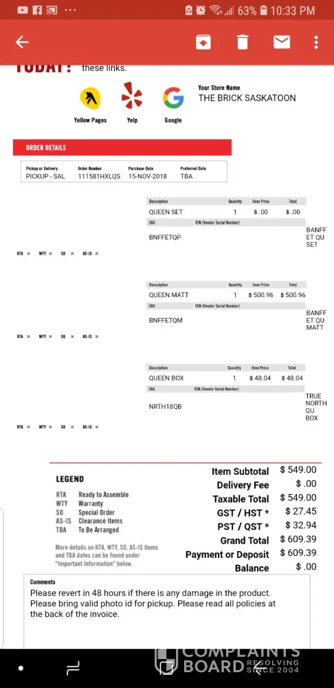 BRICK BRANTFORD CUSTOMER SERVICE IS FULL OF EXCUSES AND BLAME GAMES AS TWICE SINCE DECEMBER 2018.