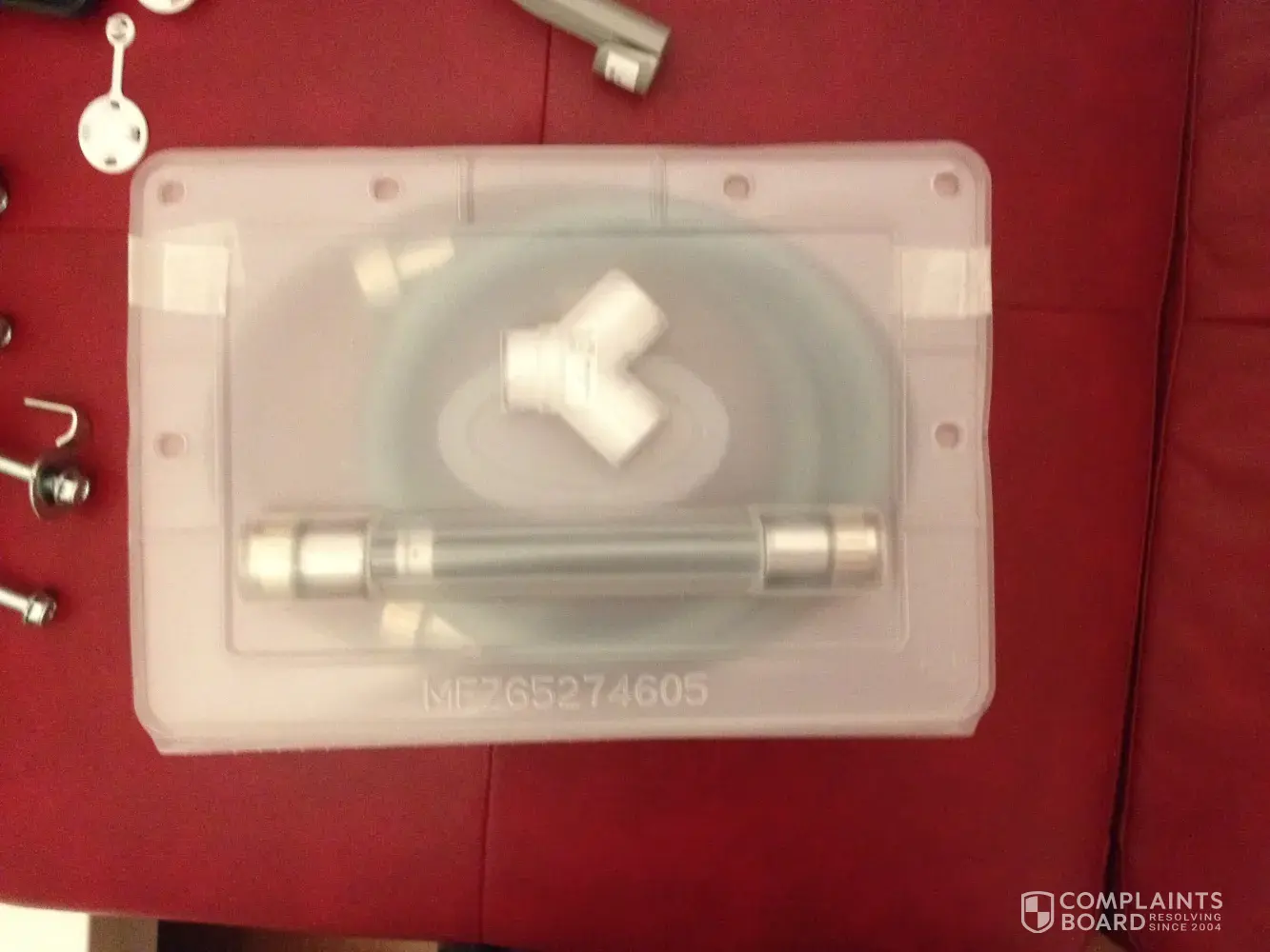 (5) After that they left, I opened the door of the dryer and found the kit for water intake of the dryer inside the dryer drum. This kit needs to be installed so that the dryer can take water for steam-dry the clothes. So the guys did not install it at all.