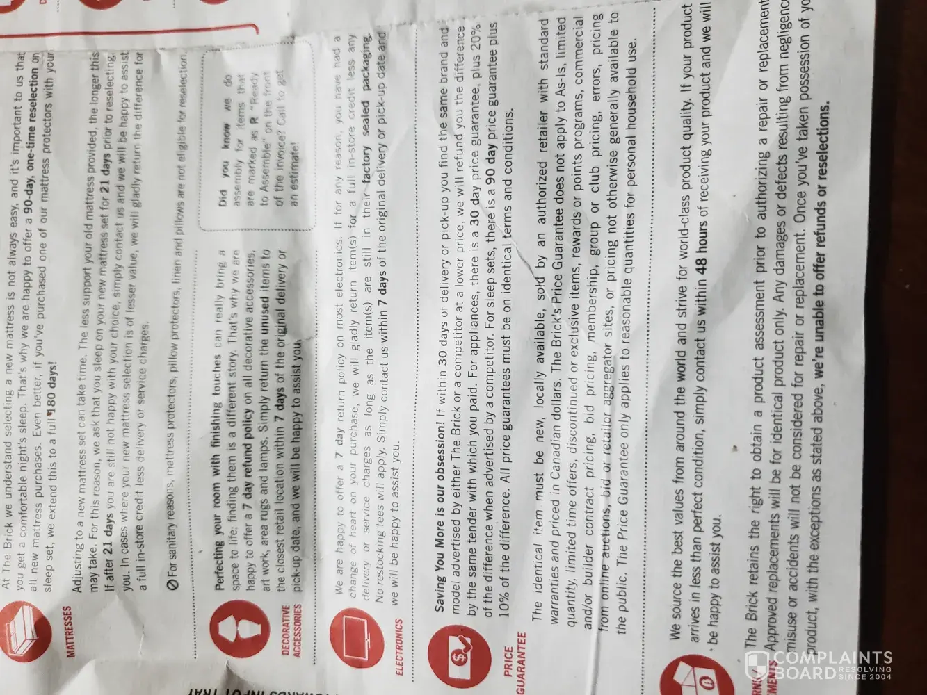 I purchased a bed set on March 2nd and had it picked up on March 3rd. Based on the receipt give we were under the impression that the sleep set is what our bed would fall under, which has a 90 day return policy. There was no clear definition of a sleep set., but it also states 30 days for the appliances and for sure we knew our bed isn't an appliance so...
