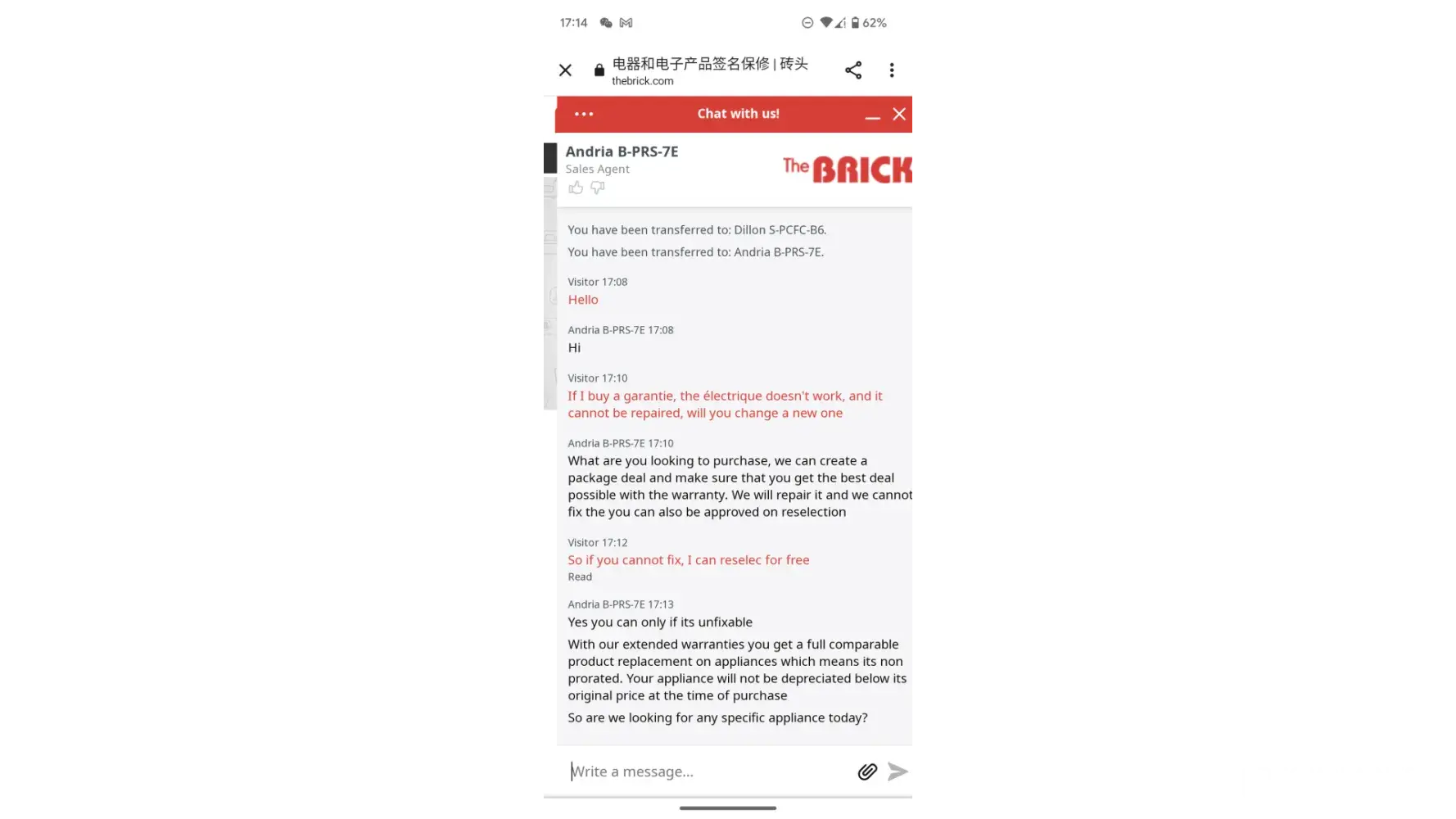 I bought a sectional on February 2022 in The Brick store Burlington Ontario paid $5000. I am not happy at all as I asked before buying the sectional and wanted a specific material that want be pilling. The worker lady that helped me told me this is the one also we will put protection on it. After 6 months I notice on the right side the spring poped and dented one side and it started pilling all over. Went couple times to the store and was told to call a number and they will send someone to look at it. Still waiting and sended an email but nothing.