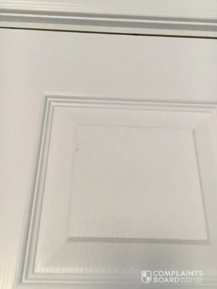 issue 3: ask for delivers to be careful due to the bedroom being newly renovated. fresh paint on the wall the day prior to the delivery date. the movers were very friendly but after the assembly one of the men came and talked to me told me i had 3 days to inspect the furniture if any damage noticeable call and they will exchange it. after the mover left i inspected the furniture and noticed there was a scratch in my newly coated and painted wall. when looking closer i noticed a chip on the left side of my headboard im assuming assembly and a gouge on my wall from the screws attached to headboard.