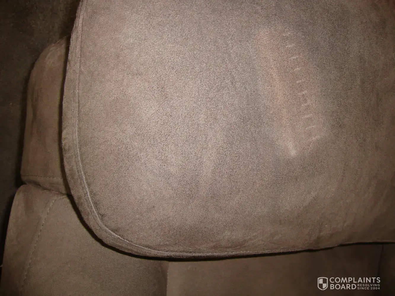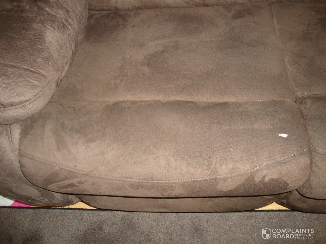 Within a few months the stain started coming off. We went back to The Brick within a year and were told that they would not do anything because we didn't get the extended warranty. We are upset because this is a defective product and we paid a high price for it. It has now been a couple of years since we purchased the item but looking at it we are very disappointed and angry. We are seniors on a pension and can not afford to replace it.