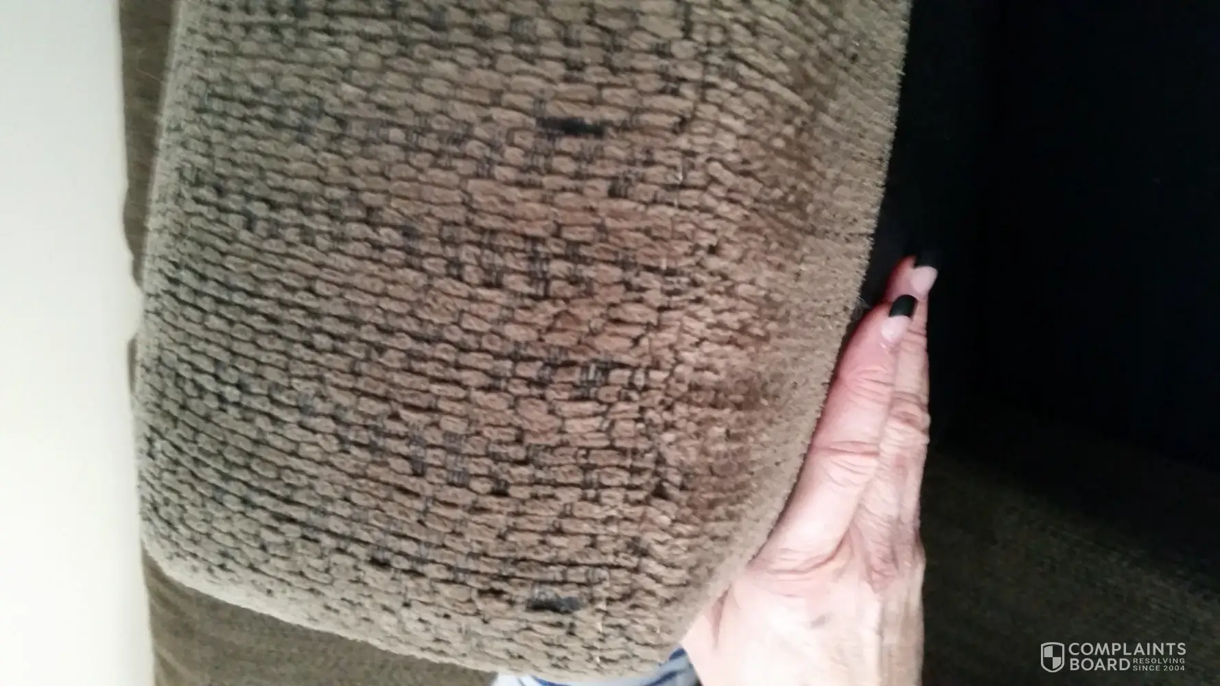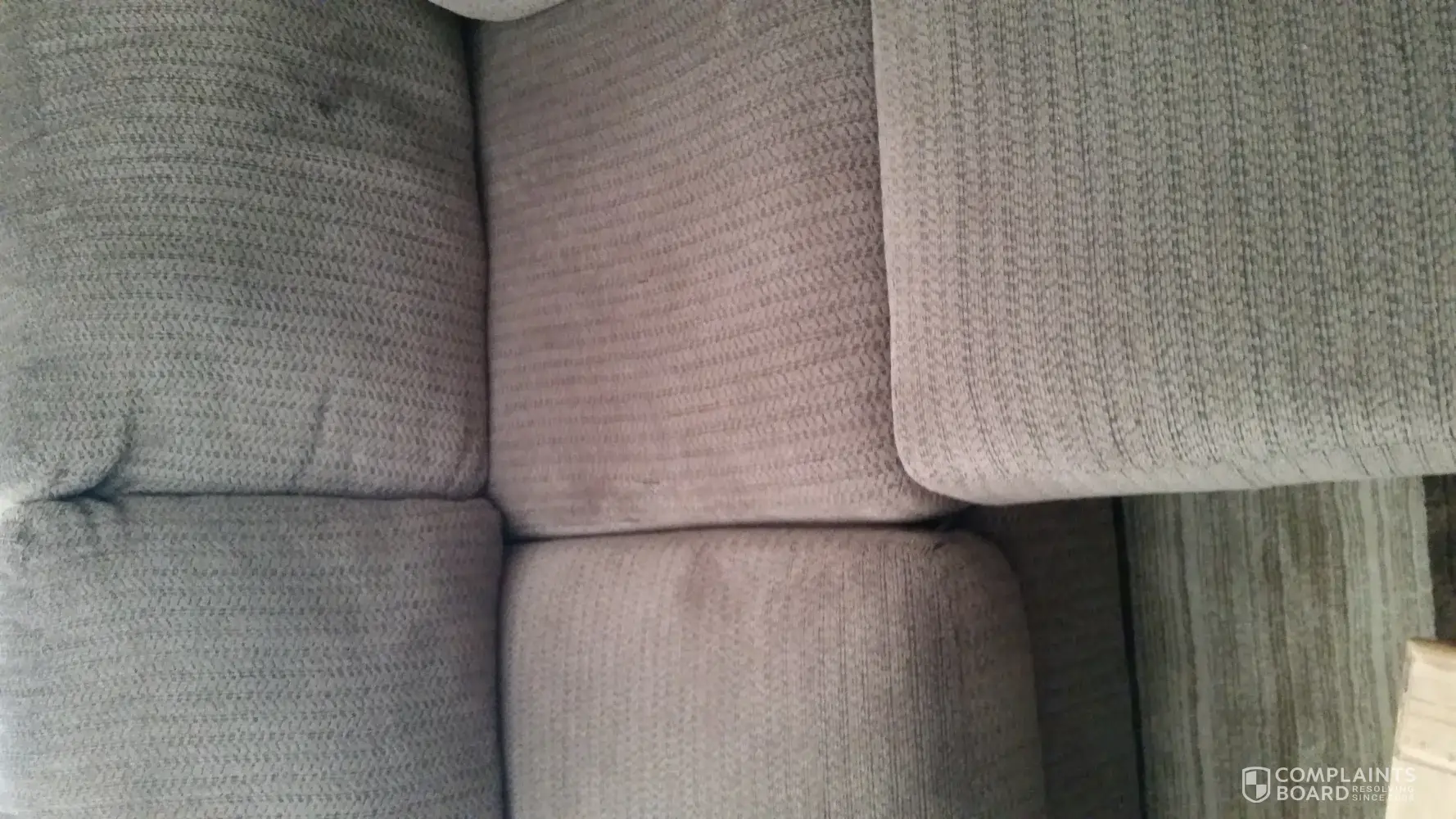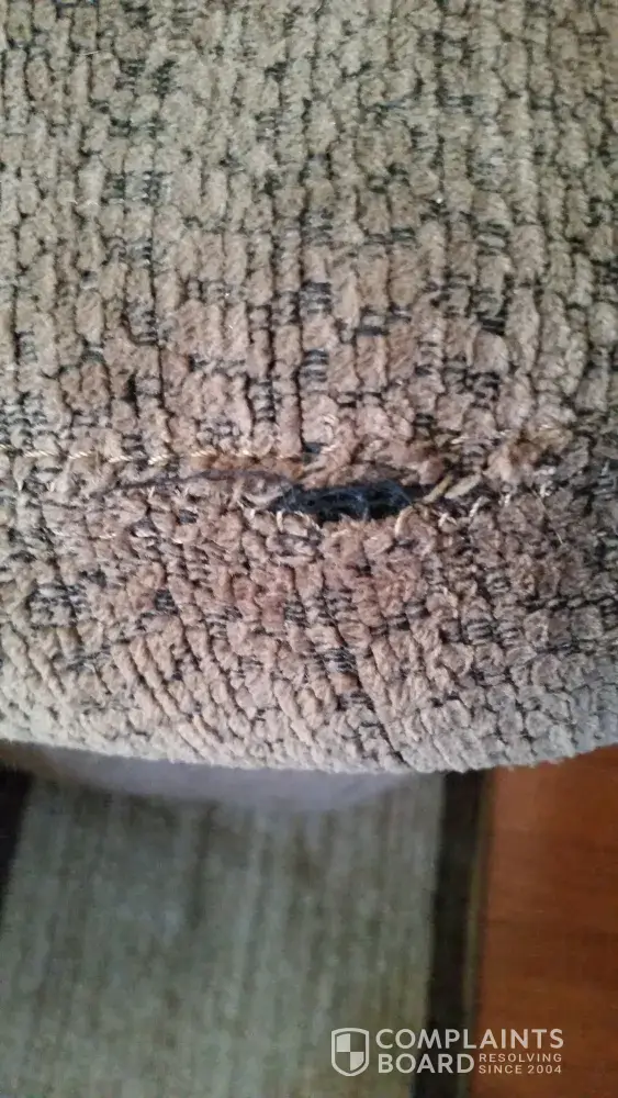 Complaint was raised in Aug 2016 and after follow ups we were told to wait for 4 months to get the seat repaired. Accordingly in Nov 2016, a service technician visited us with the middle seat cover but the cloth that he brought didn't match exactly with the rest of the sofa & also he confirmed that other seats are wearing off, so he himself recommended to inform the Brick about the same and he had taken pictures himself to let Brick know. He also fixed the screw that fell off and confirmed that it was never drilled correctly in place to start with, so it was a manufacturing defect.