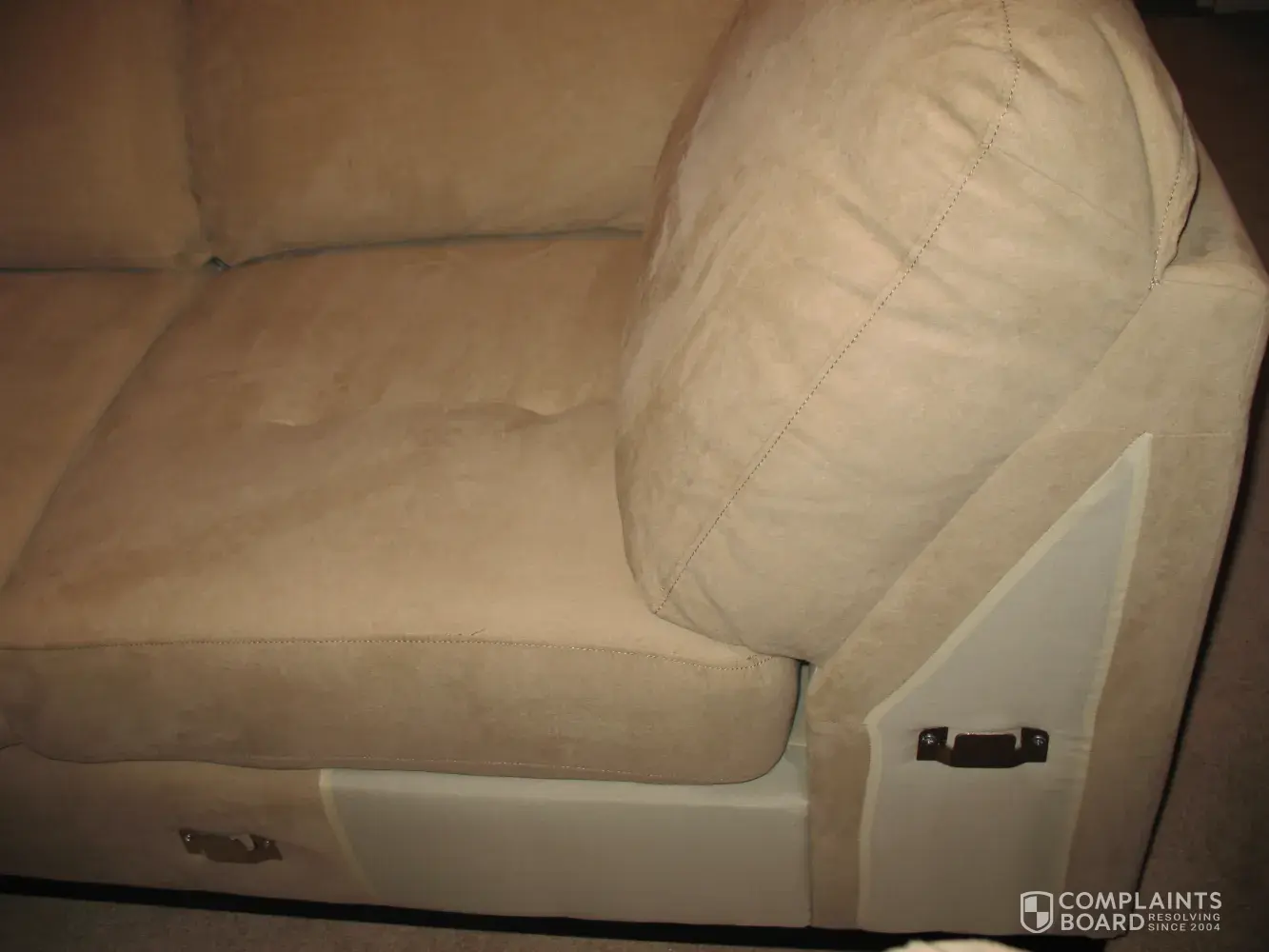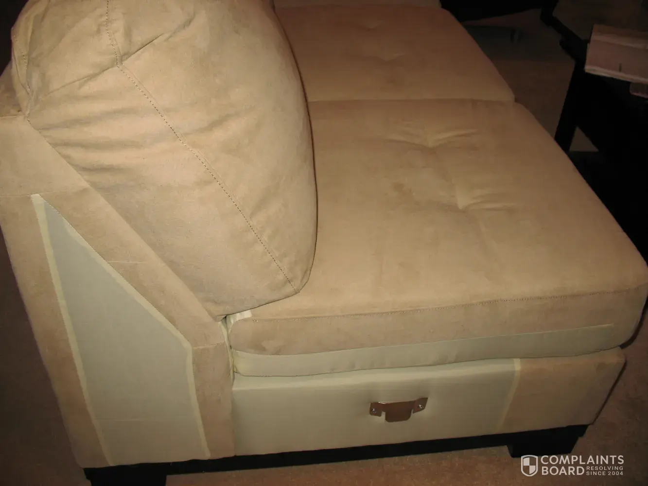 i have had 2 of these Oakdale couches. the brick replaced the first one with another because the stitching came apart and now the same thing is happening to this one, but at the back of the cushion, where the 2 fabrics meet.of course, the warranty has expired! what kind of idiot manufacturing company sews faux suede onto a cheap, satin-type material and expects it to last? 2 couches in 2 years! that's ###!