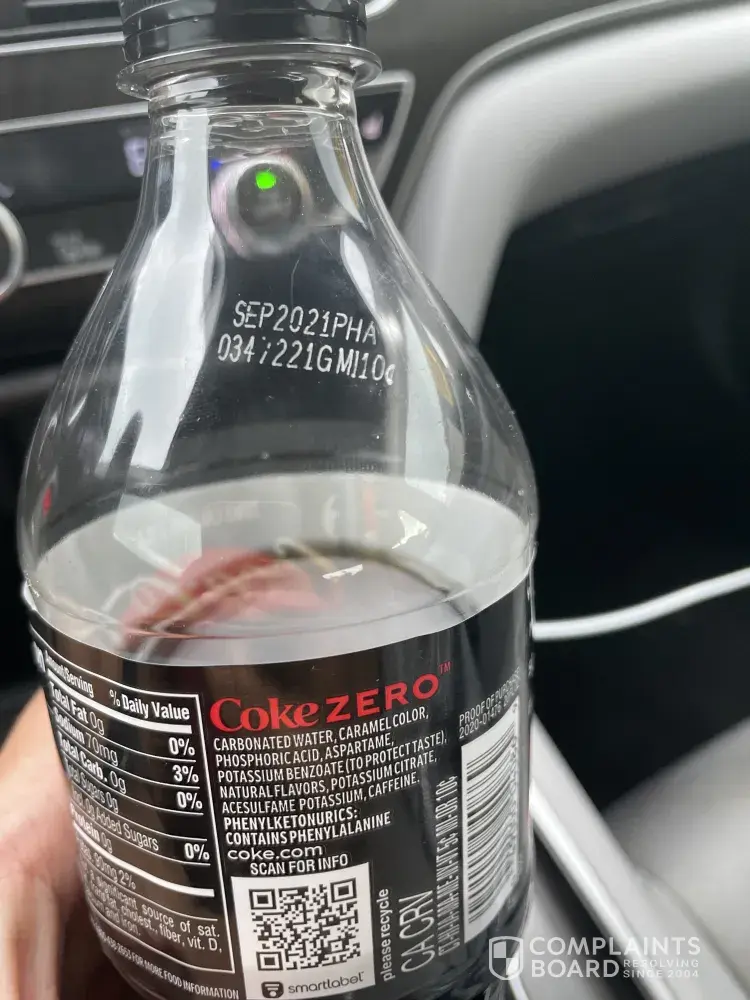 Bought bottle of Coke Zero tonight and opened took a drink and noticed the bottle top smelled like mold or mildew. Smelled the cap and the inside of cap also smelled the same.. poured soda out into a cup and didn't smell bad tasted a bit weird. It is one of the new bottles . I would place bets that I drink more Coke Zero than most people in America and can tell when it's off. I dumped the remainder of the bottle before thinking it could have helped if I saved it. My apologies. Have there been any other complaints? Thanks for listening. Code stamped on the bottle is AUG1219 LPC1949 if that helps