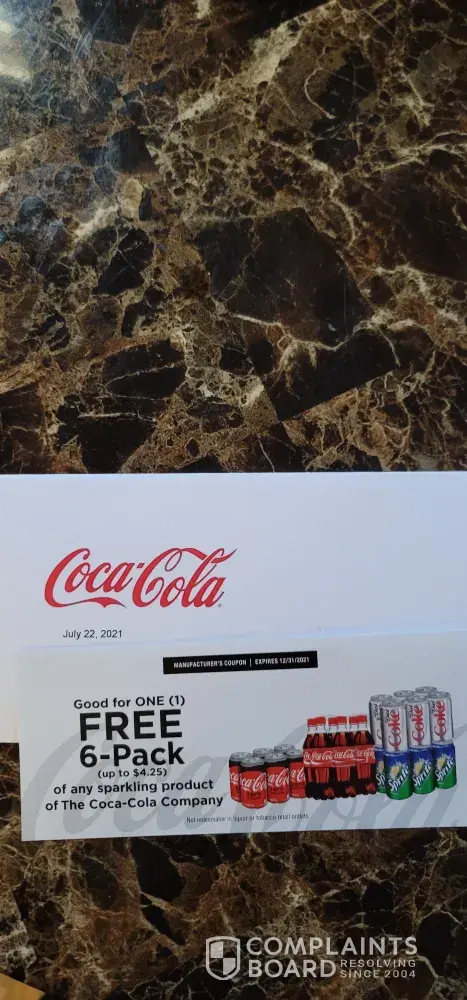 UPDATE! SENT A EMAIL TO COCA COLA ABUT THE 2 20OZ BOTTLES THAT SMELLED BAD FROM MY 6 PACK. I REPLIED TO THEIR QUESTIONS ABOUT THE PRODUCT AND THEY SENT ME A COUPON FOR A FREE 6 PACK.