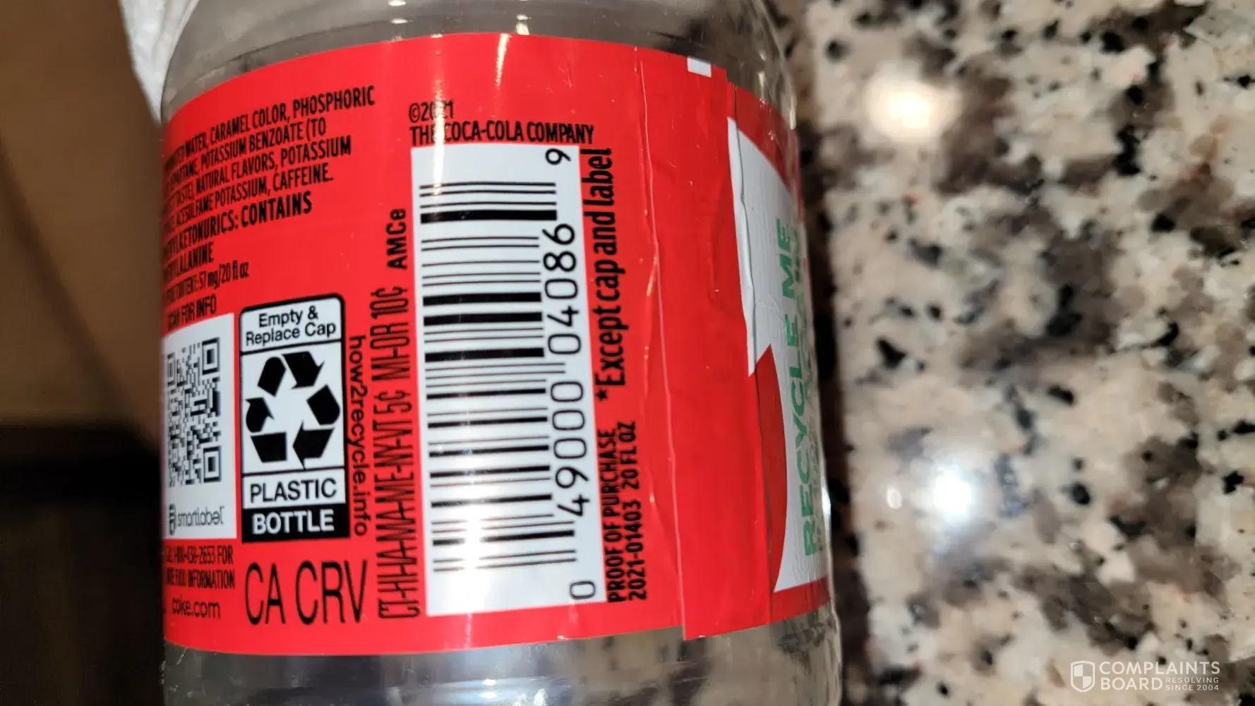 Bought bottle of Coke Zero tonight and opened took a drink and noticed the bottle top smelled like mold or mildew. Smelled the cap and the inside of cap also smelled the same.. poured soda out into a cup and didn't smell bad tasted a bit weird. It is one of the new bottles . I would place bets that I drink more Coke Zero than most people in America and can tell when it's off. I dumped the remainder of the bottle before thinking it could have helped if I saved it. My apologies. Have there been any other complaints? Thanks for listening. Code stamped on the bottle is AUG1219 LPC1949 if that helps