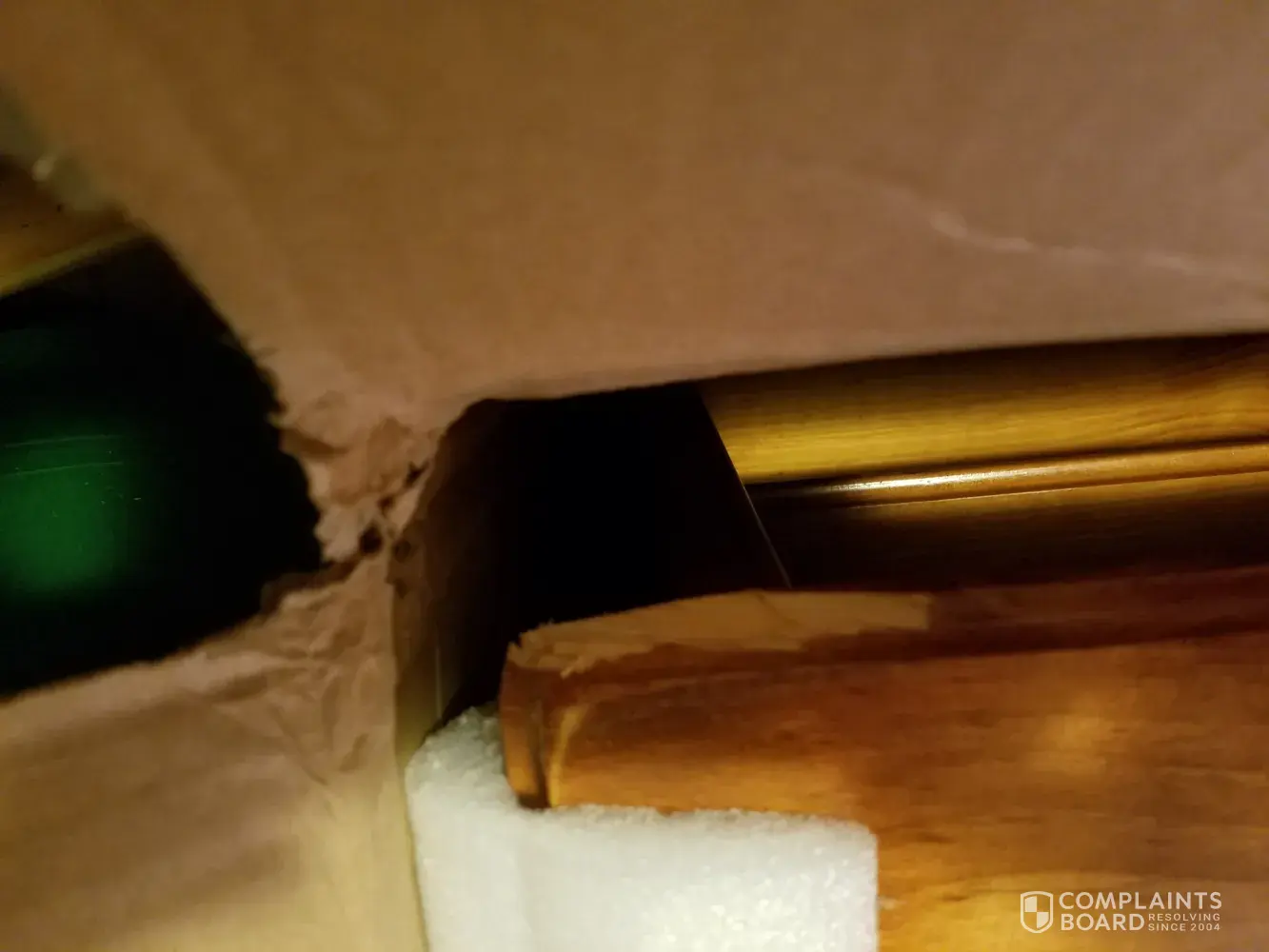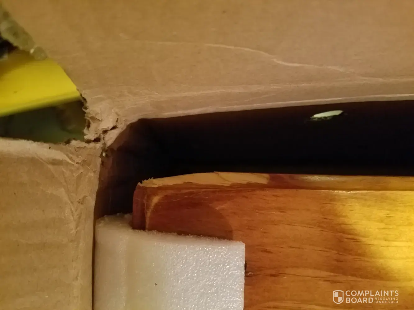 The headboard had a smashed corner on the top front, and we stopped even unboxing at that point.