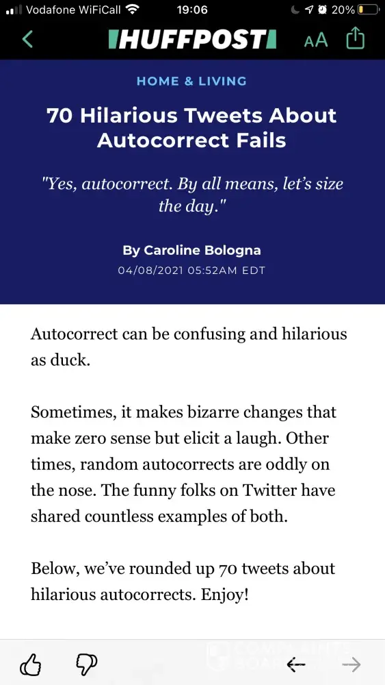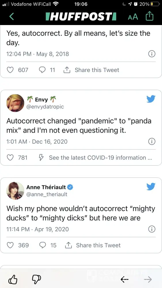In the article ‘70 hilarious tweets about auto correct fails' on 8th April 2021 by Caroline Bologna.