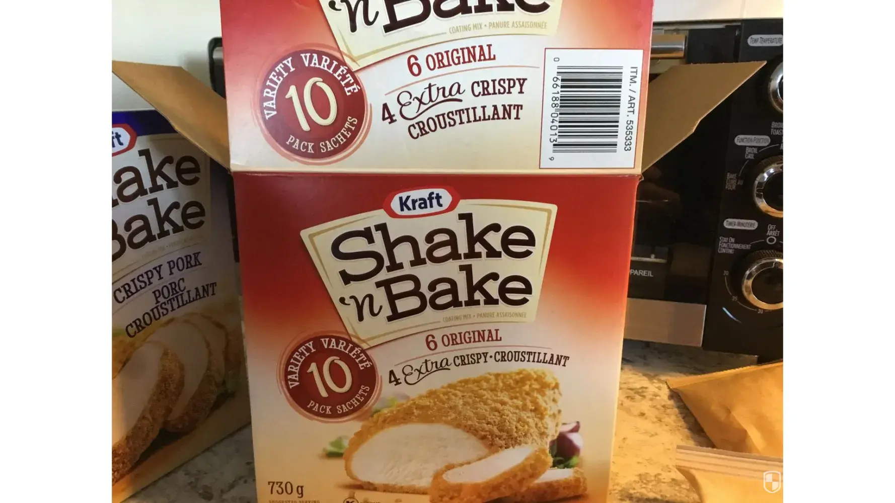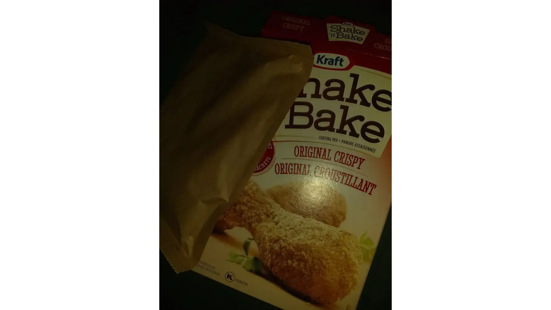 I Bought a box of shake and bake for pork chops and when I opened the box not only was there only 1 shake bag but the one that was in the box was defective. It was sealed so far from the bottom it left me about 1/2 a bag to work with.