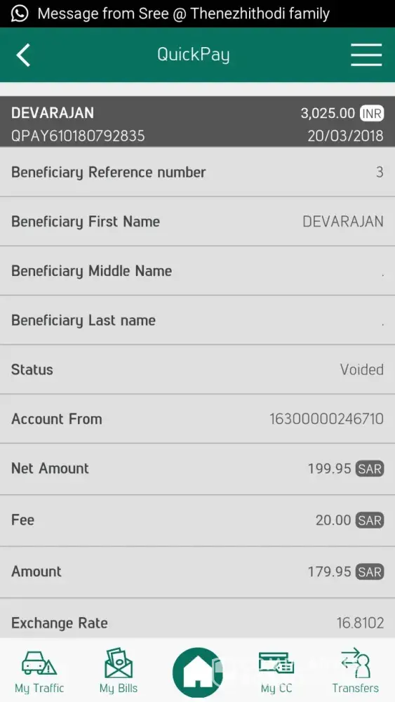 I Start new NCB quick pay payroll account last March 20/2018, and the same day morning 11:06 i transfer 200 SR to my Beneficiary account in india. But untill now i did not receive the money. so please help me and give the feedback.