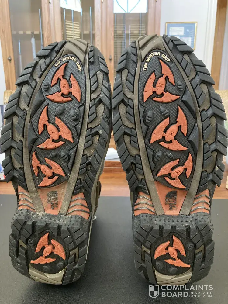 the bottom rubber sole fell off on one of the boots which is very dangerous when doing outdoor activities. I do have numerous north face products including the jackets which are very worm and never had a issue with any product until now. if at all possible would like a new pair of boots as i am sure it was just a defect with the adhesive process. also i sent pictures to show the boots were not abused in any way and still look new and that the sole came off in one piece and not in pieces. thank you for dealin with my complaint and i hope we can come to a happy solution.have a great day and good new year!