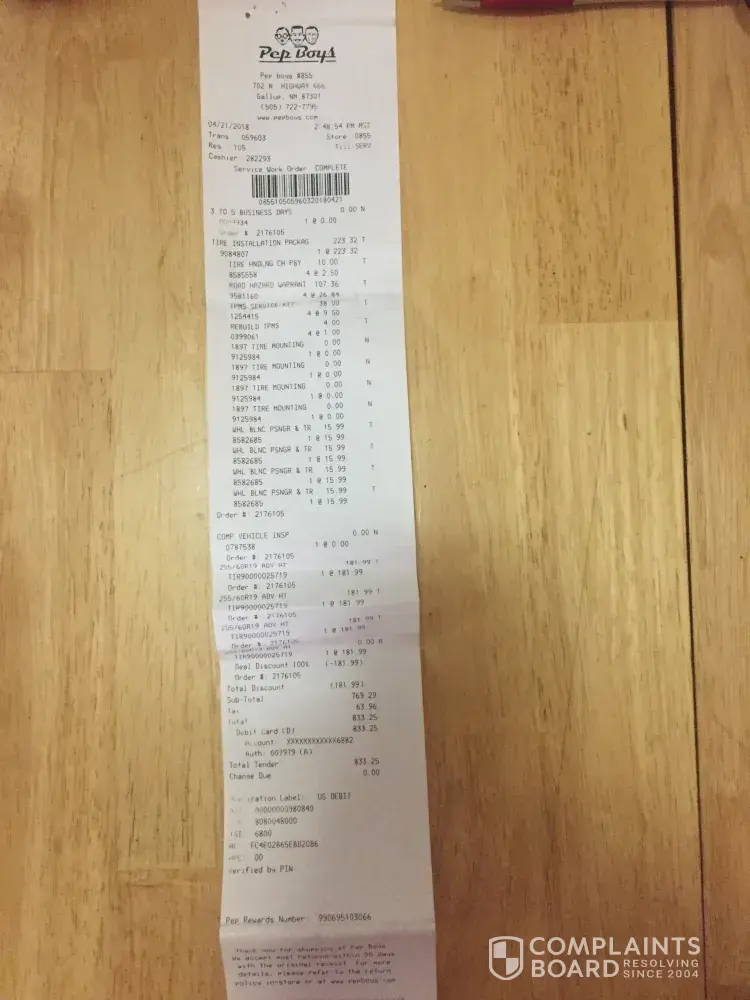 Approximately a month later, things got worse, I returned the vehicle to the same pepboys (chino, ca) where Don, the manager was very contrary and disobliging; explaining that my dates of repair were wrong and that regardless of what the estimate done on April 21, 2018, it did not matter and it was not pepboys problem.