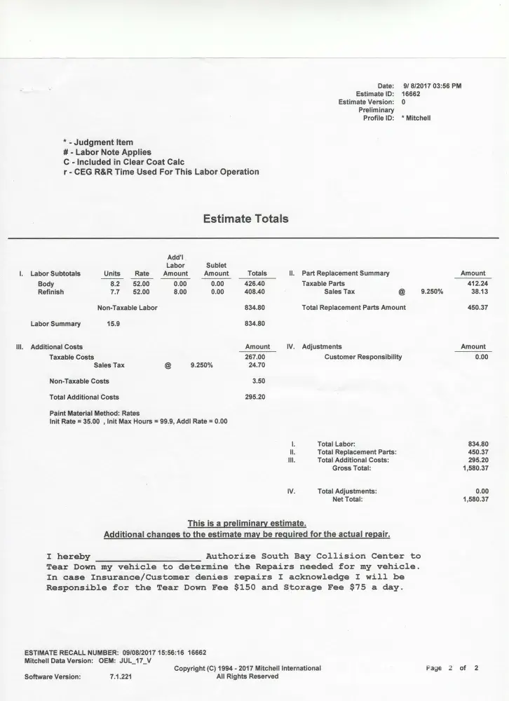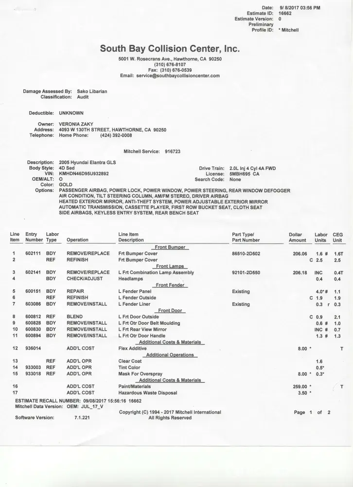 Sat Sep 9th – I had the 2 documents that Ms Acuna gave me, signed: the one for my son, and the one for my current landlord.
