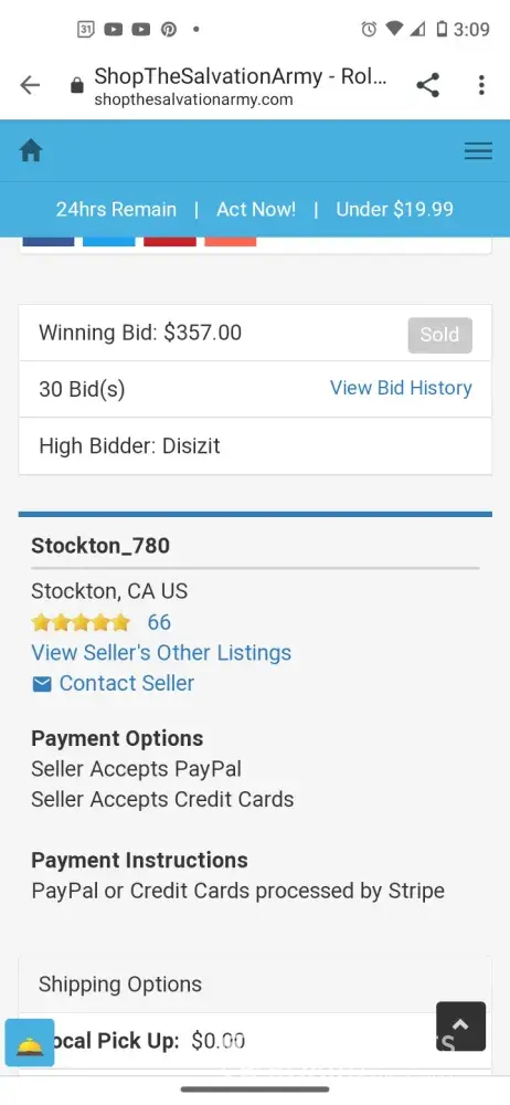 Desired outcome: Obviously, the only thing I lost was my trust with the Salvation Army; I did not bid on the item. I guess I'm writing this because I just wanted to make someone aware of it.