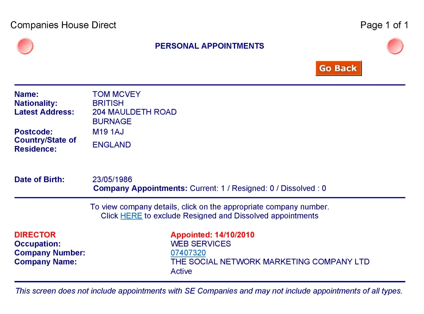 Perhaps Tom McVey thought that since his Dad, Neil McVey lies to government authorities he might as well 'follow in father's footsteps'. It could explain why they are both shown to lie to Companies House.