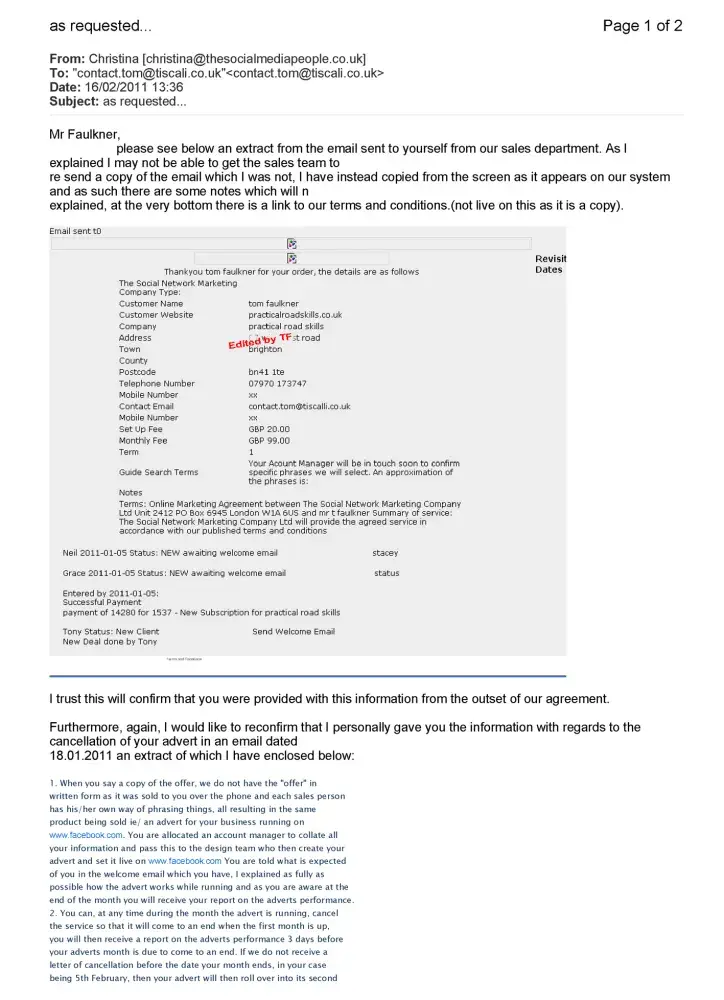1. More proof documents relating to the risible business practices of The Social Media People.