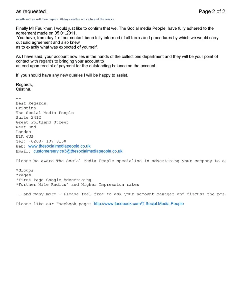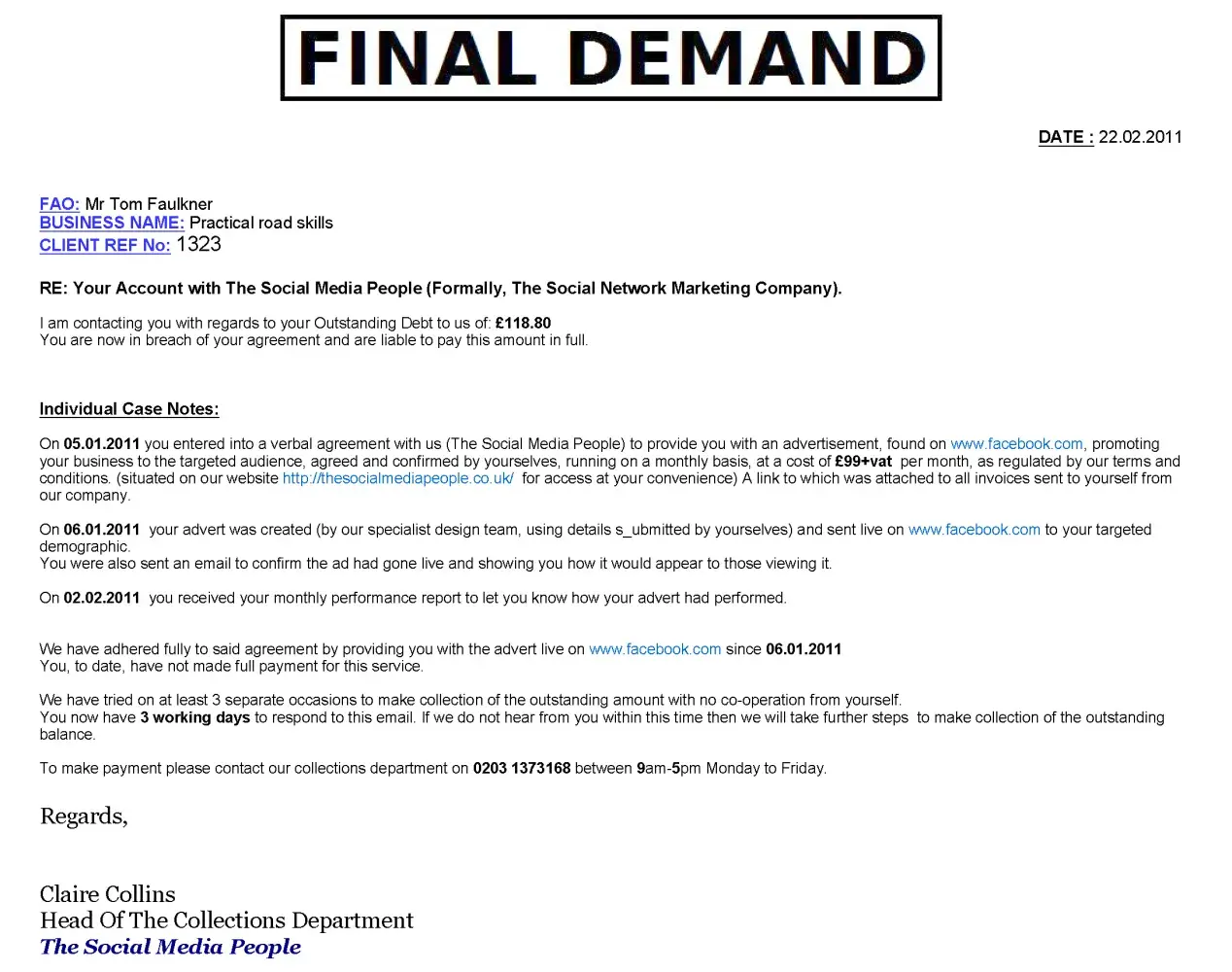 Now, here is proof that The Social Media People ‘got it wrong’ – in several ways - in a Final Demand for payment.