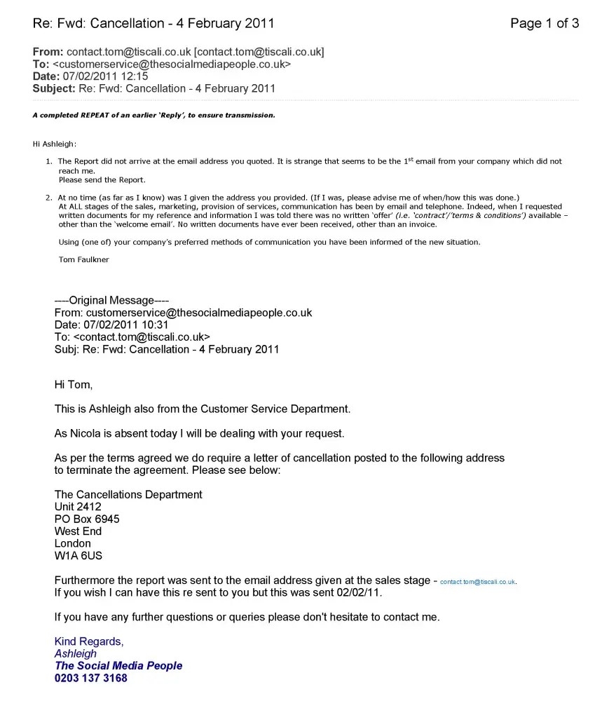 Further to earlier posts, I promised to publish the documents to and from The Social Media People relating to its failure to provide information at the right time, and then attempt to hide the fact of its failure.