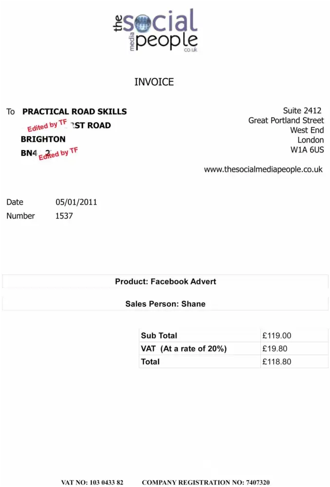 So here is another example of wrong addition by The Social Media People, on a (supposedly) VAT Invoice.