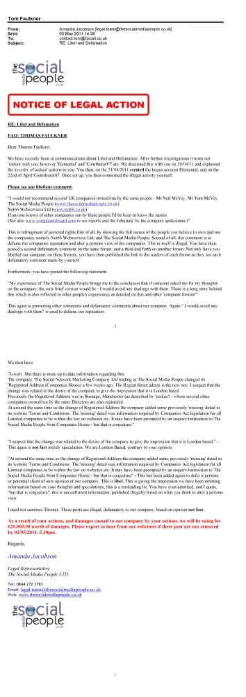 “It now appears through a little bit of research on the internet, IP tracking that kind of stuff, that on complianceboard.com erm... 17hours and 20minutes ago from today, you have again actually posted something libellous.”