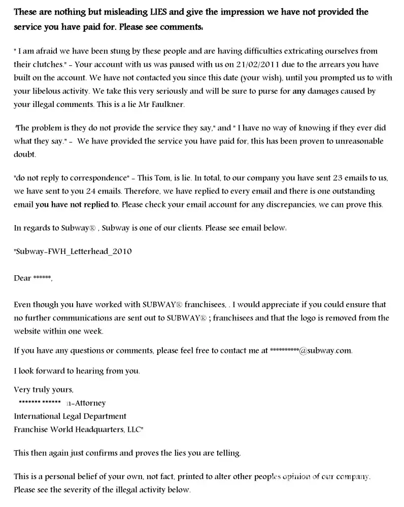 Just like the one that follows it was sent to me by the fictional Head of Legal Team, ‘Amanda Jacobson’, whose childishly laughable attempts at a ‘legal notification’ are self evident.
