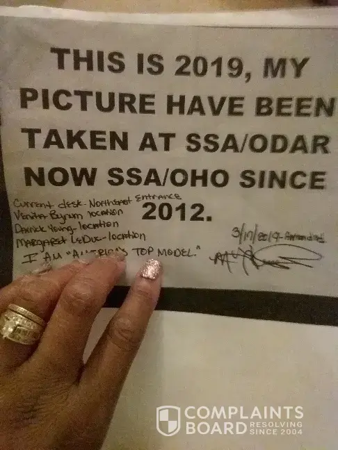 I am writing a complaint about the SSA employees. I know some of these employees work long hours, but the rudeness, and the cranky attitude of a lot of the employees toward the customers that are being serviced are disgusting. Some customers come from a far; waiting in long lines and often have varied disabilities. Recently I needed to bring in important paper work, and this one individual working for SSA was very empathetic, rude, aggressive and not consumer friendly. She made it difficult for me to get my point across cutting my sentences short belittling me, I've done nothing to this woman. Nor have I spoke rudely to her. I would like to see SSA retrain their employees to handle stress better! no need to evoke stress on the customer. Leave it at Home!