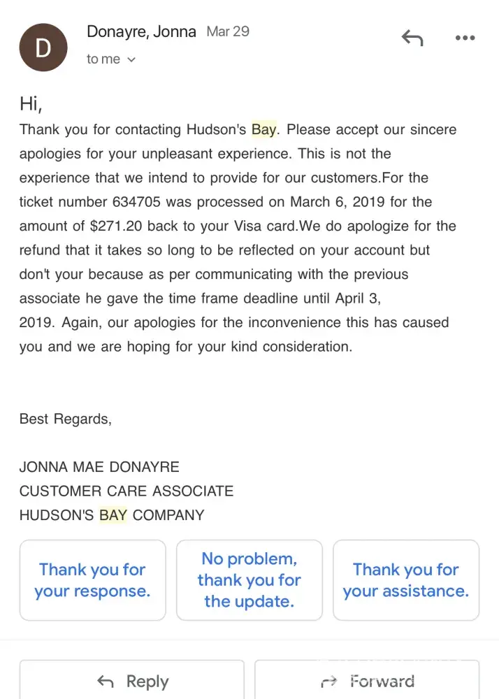 Thanks Hudson Bay for the excellent and efficient customer service, NOT!