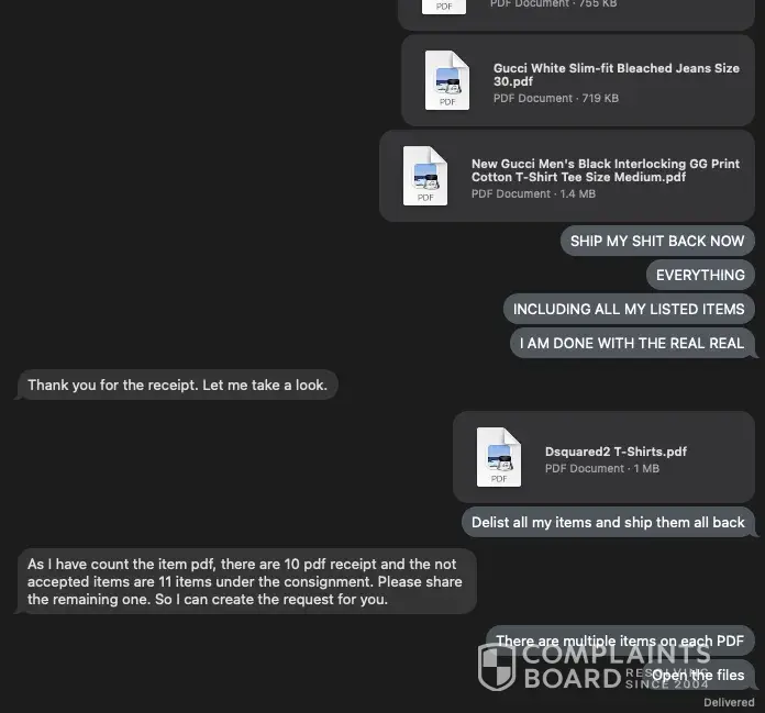 • While TheRealReal has a high level of trust, our investigation has revealed that the company's complaint resolution process is inadequate and ineffective. As a result, only 0% of 36 complaints are resolved. The support team may have poor customer service skills, lack of training, or not be well-equipped to handle customer complaints.