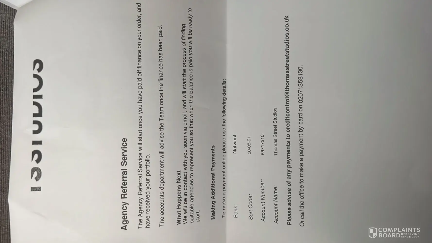 I was informed by Paulo Garcia a worker from Thomas Studios to pay just 50£ To cover my daughter photographs and the day, I did my daughters hair myself and after my daughter finished the photos, an agent sat us in a room and say to get the photos we needed to pay a package of 1500 which I didn’t pay, they made me sign a contract. I never received anything from Thomas Studios and now I have CRS chasing me for 1900£? By law if I don’t have the product I don’t have to pay for anything they can’t force me to have the photos and pay the balance as I don’t have that money, they should stop harassing people and stop damaging peoples verdict scores with nonsense thanks