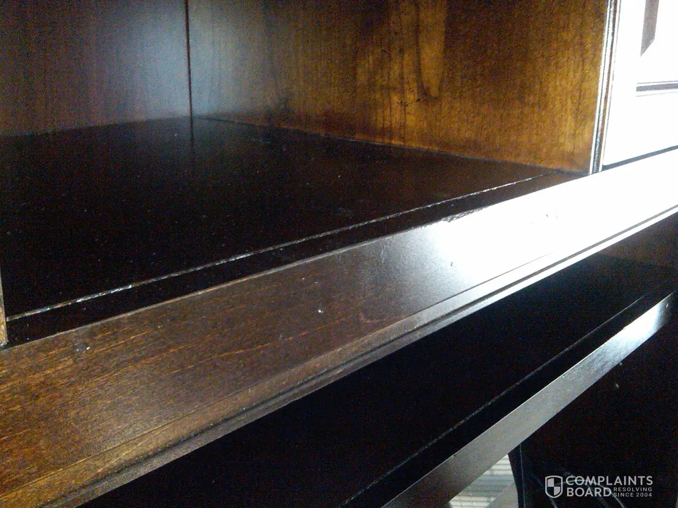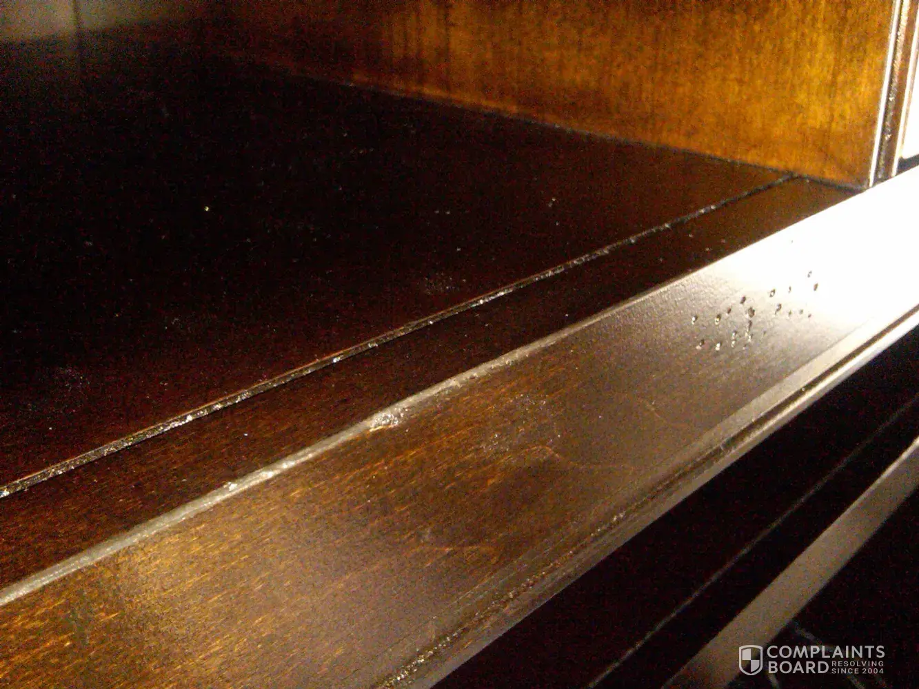 gooey substance leaking from side recess tracks in tv cabinet