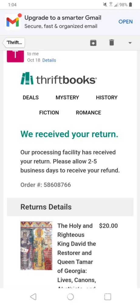 Disappointing Experience with ThriftBooks.com: Poor Communication and Incomplete Refund