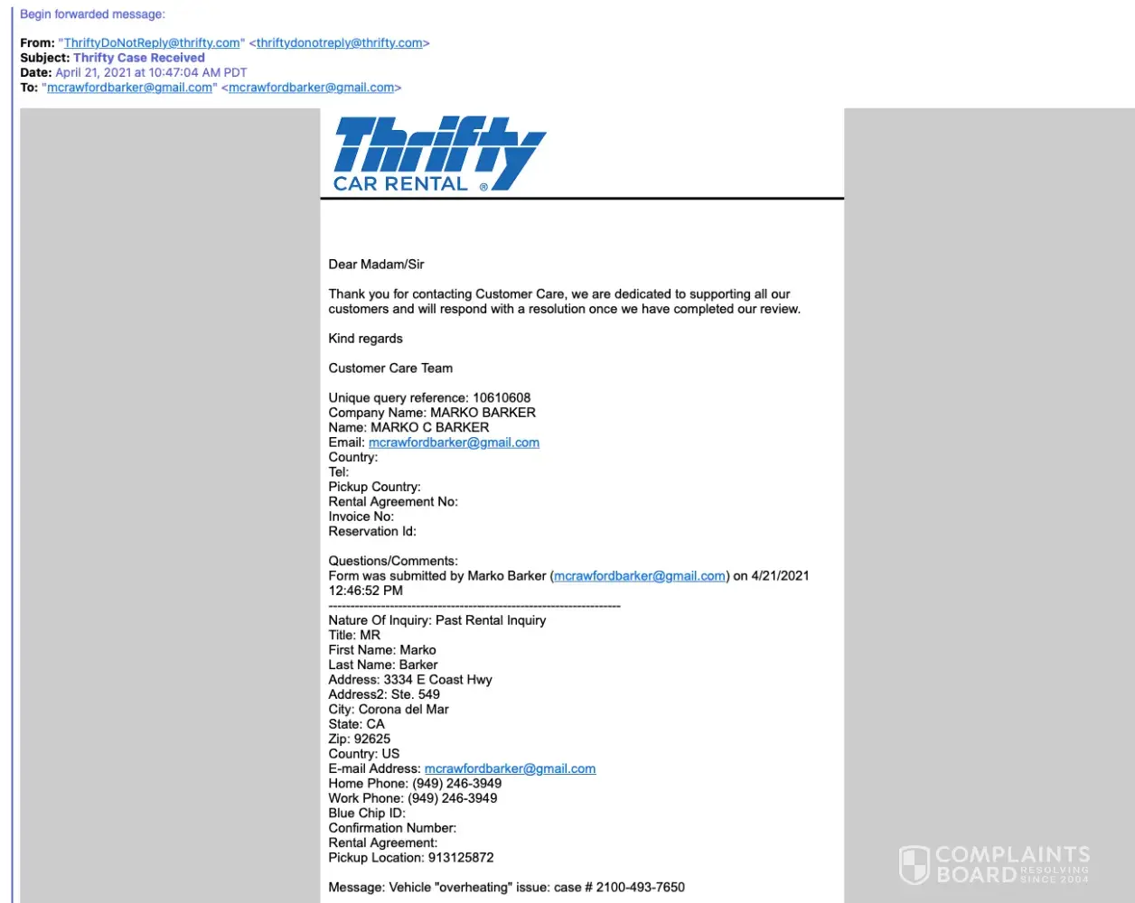 in essence, by sending best buy citibank (son's credit card) thrifty claims that they "did" provide a vehicle, which is outright fraud!