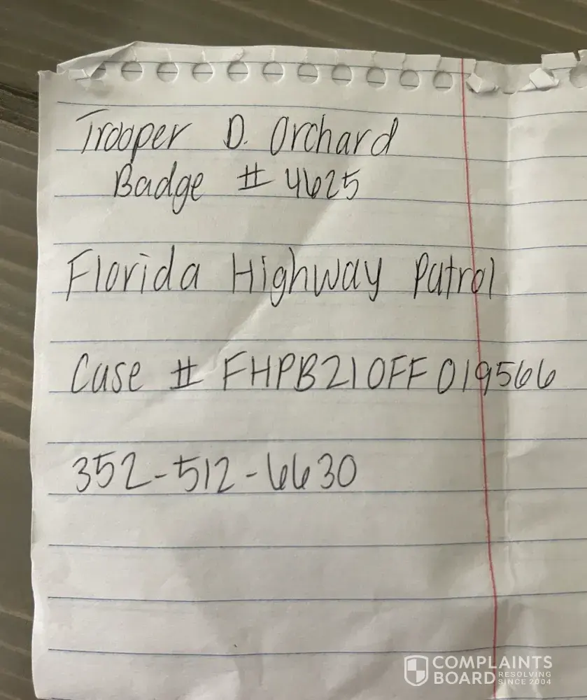 To validate this statement we have our call log showing when we called Thrifty, how many times we called Thrifty and thrifty calling us back, timestamps can confirm we were in contact with thrifty and length of call on the log can prove we didn't just call and hang up, we spoke to people to figure out what the process was for reporting an accident and getting a tow and Lyft. We have a police report and contacts a Florida highway patrol as to who was there, road rangers, and which officer with a case number.