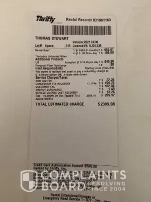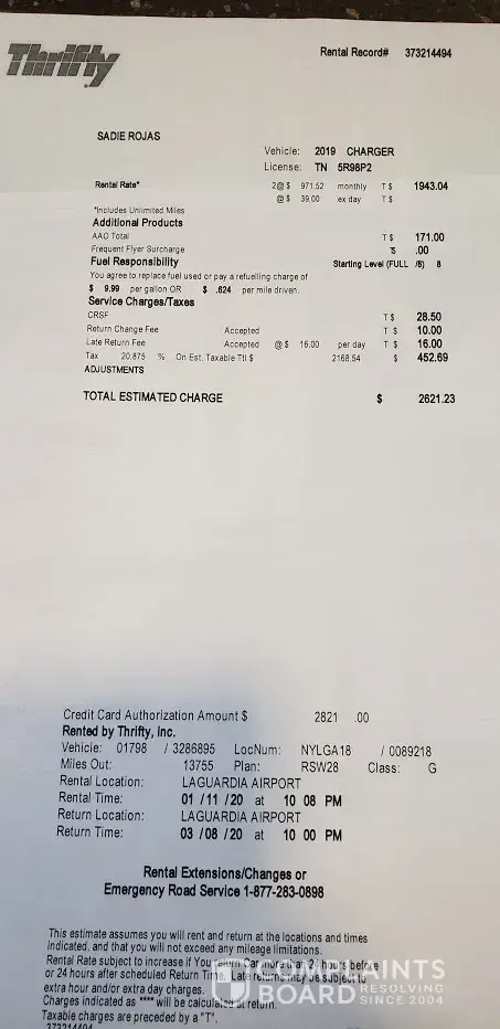 I rented a vehicle from Thrifty on Jan. 16, 2021