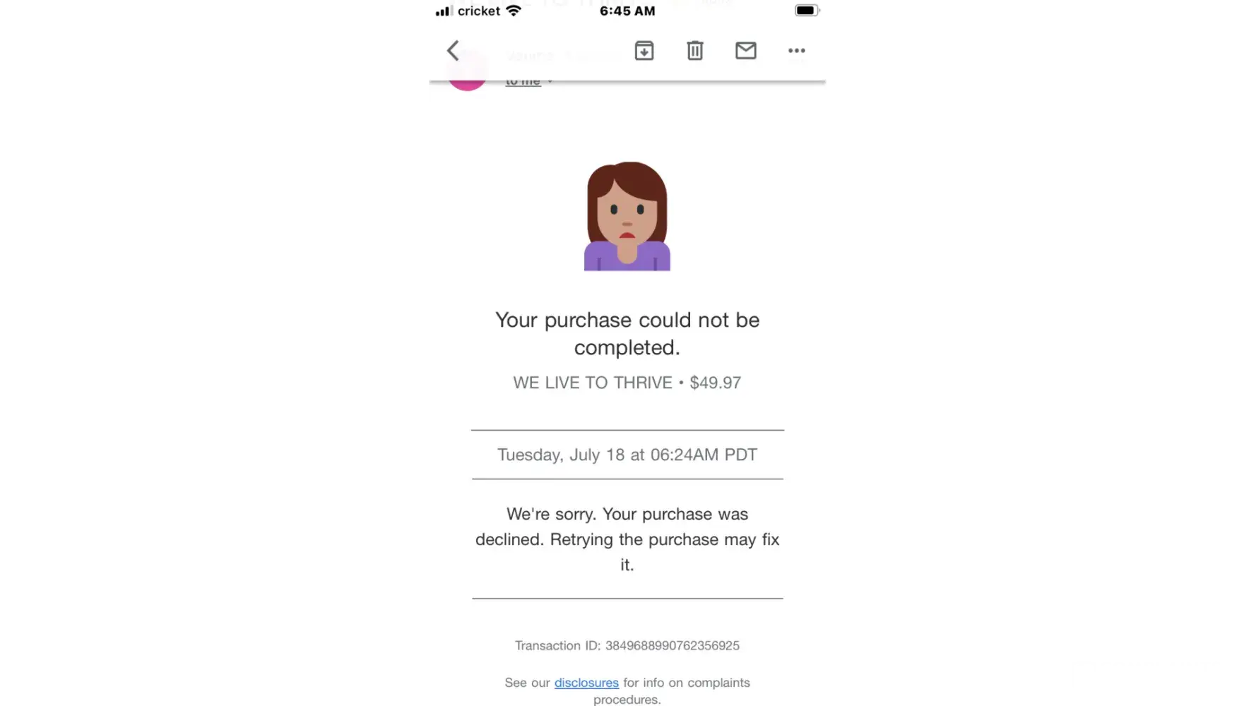 Justin told me that I was not a Thrive Gives member because my application was canceled after I placed an order. I was really frustrated because no one ever mentioned that my application would be canceled if I paid for a membership and placed an order. And I never received any communication stating that my application was now canceled since I was a paying member. It felt like they were trying to trick me into paying for another membership fee.