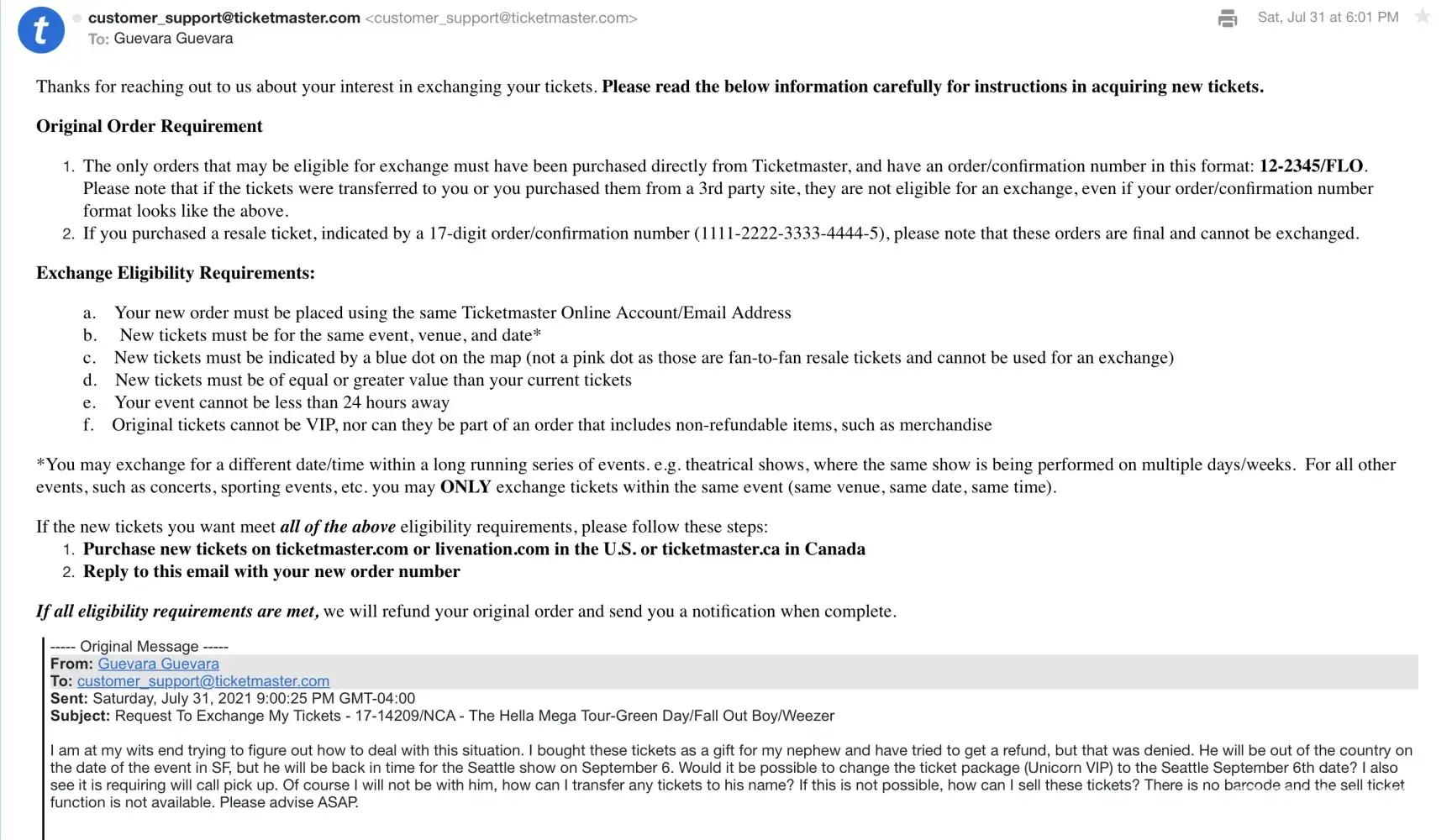 Thank you for contacting Ticketmaster Fan Support.