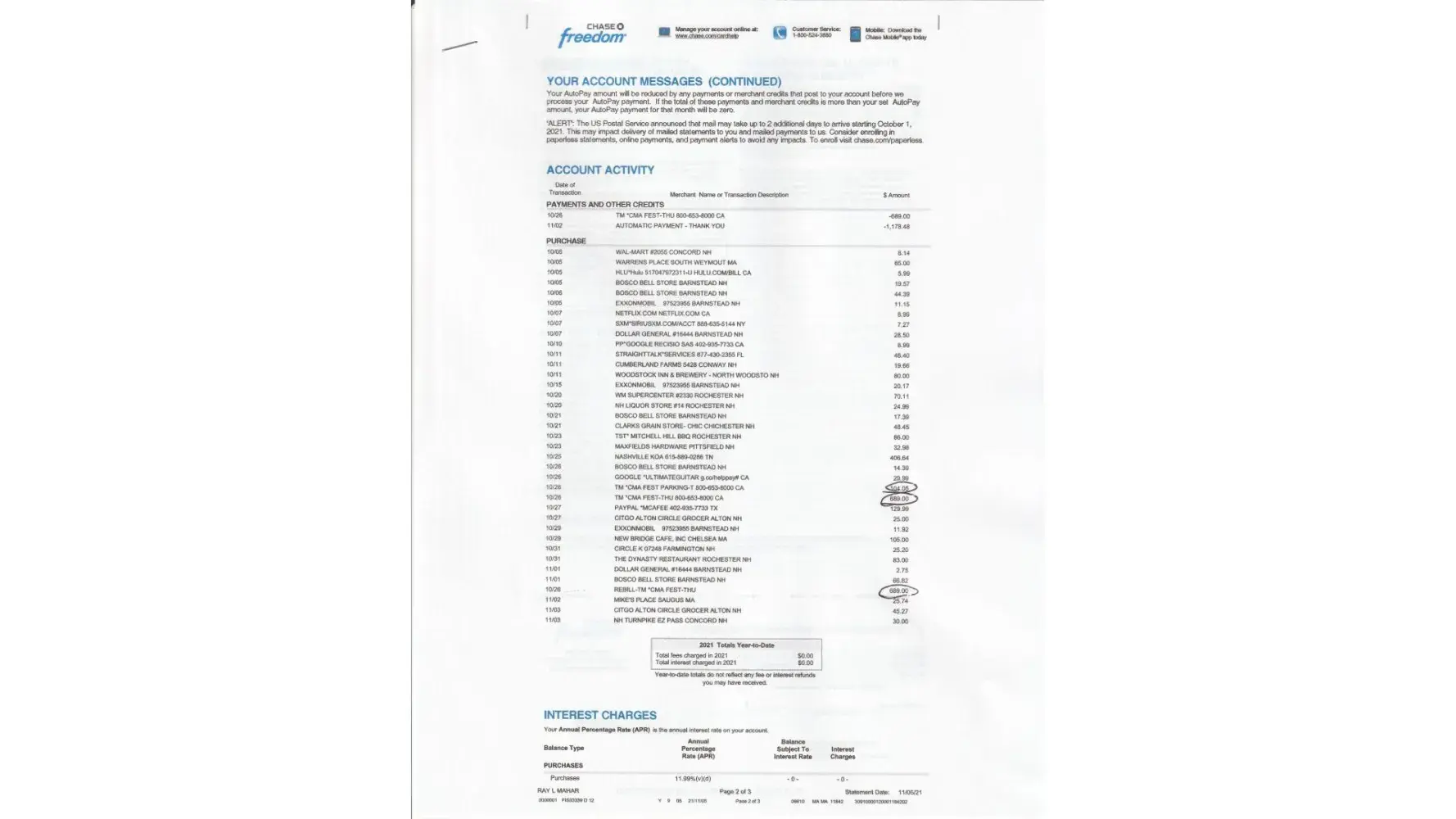 Order #47-57985/SCS On 10/26/2021 I ordered 2 tickets to the CMA music festival. The total was $689.00. Please see attached. I received an email notification with seat assignment and receipt for payment.